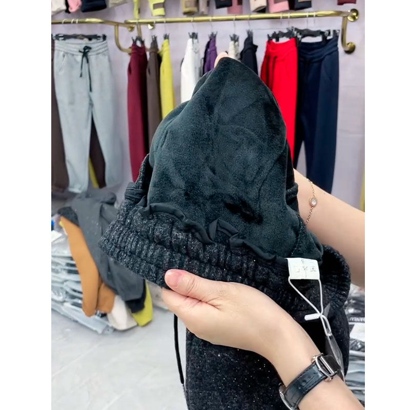 佐梦依加绒加厚休闲裤 弯刀阔腿裤