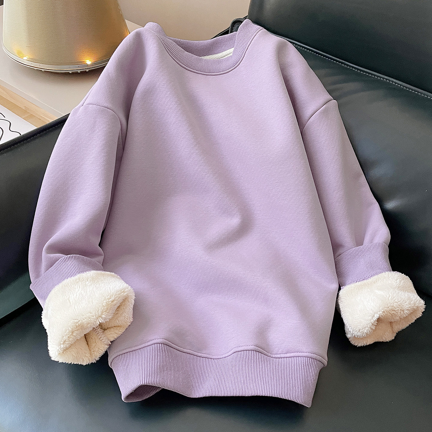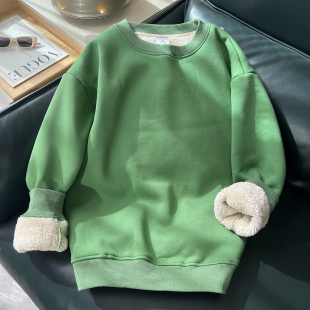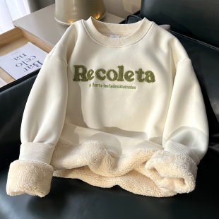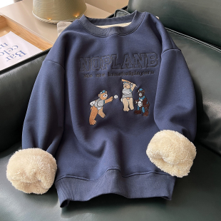 亏本清仓卡通风圆领卫衣女加绒加厚宽松仿羊羔绒套头上衣冬季 保暖