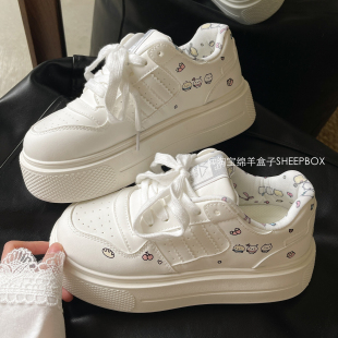 ins潮百搭小众面包鞋 绵羊盒子增高厚底小白鞋 春板鞋 2026新款 女款