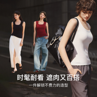 ubras吊带背心女上衣白色休闲打底免穿文胸带胸垫t恤内搭26新款