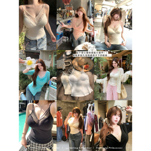 安妮不火 收腰小背心 纯欲风自带胸垫蕾丝网纱拼接吊带女微胖大码