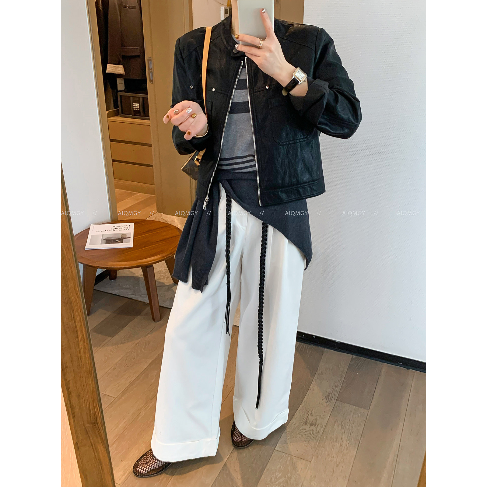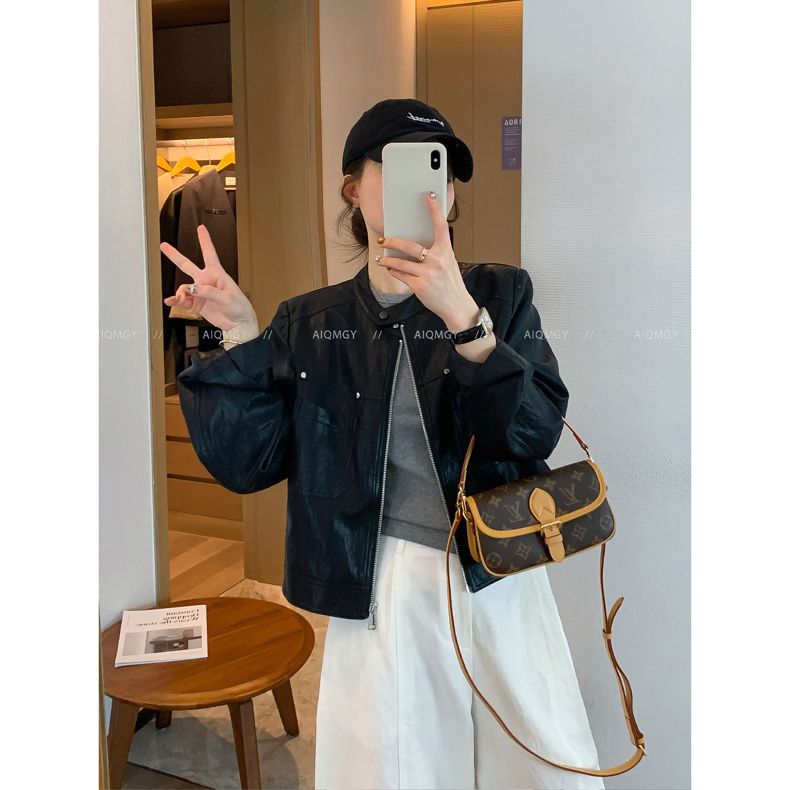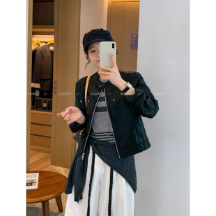 时尚 新款 机车服上衣 黑色圆领皮衣夹克外套女2026春季 爱情魔鬼鱼