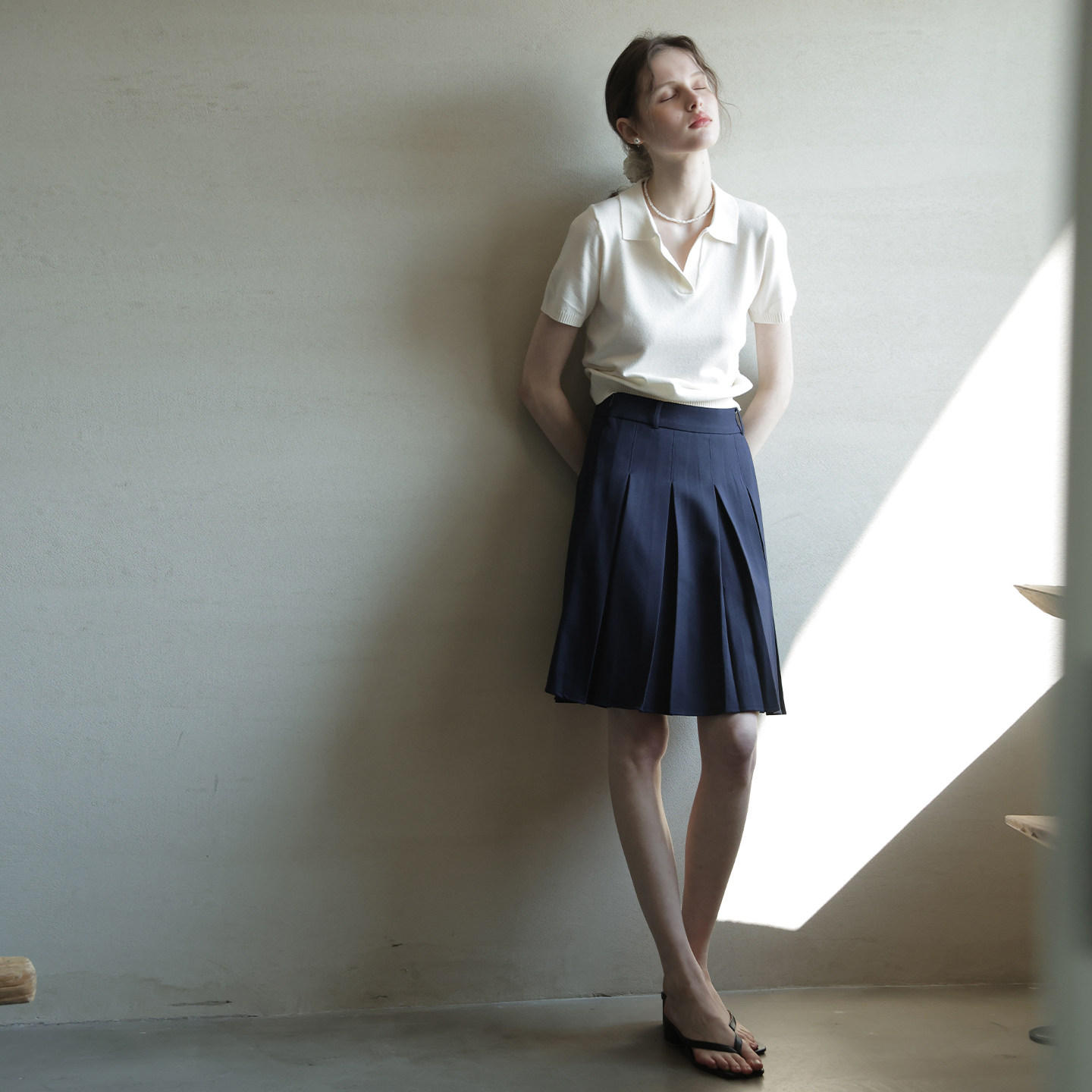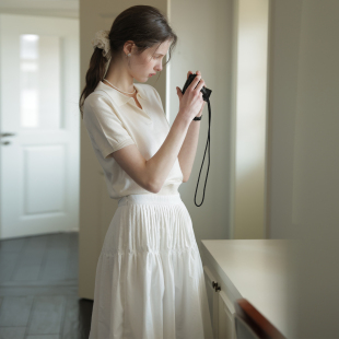 小个子正肩气质百搭针织T恤短袖 春夏新款 上衣 白色polo衫 复古经典