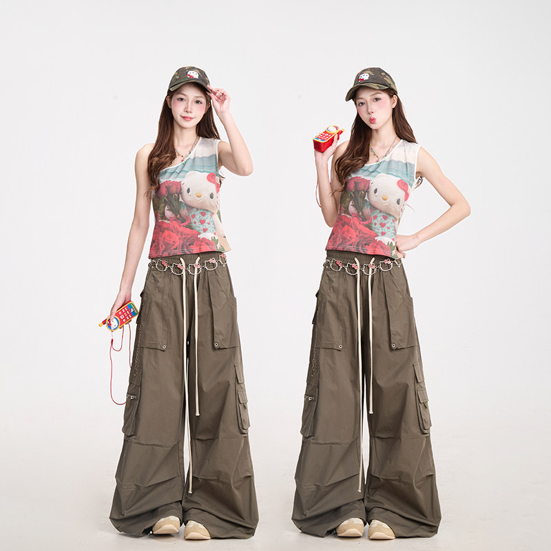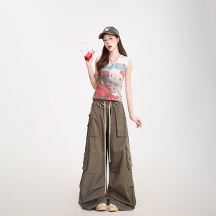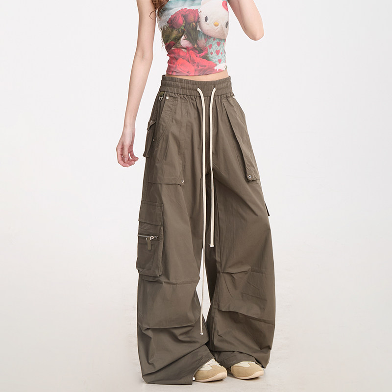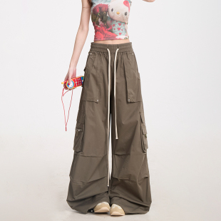 复古工装 宽松垂感阔腿裤 裤 多口袋褶皱伞兵裤 女新款 NERESUM美式