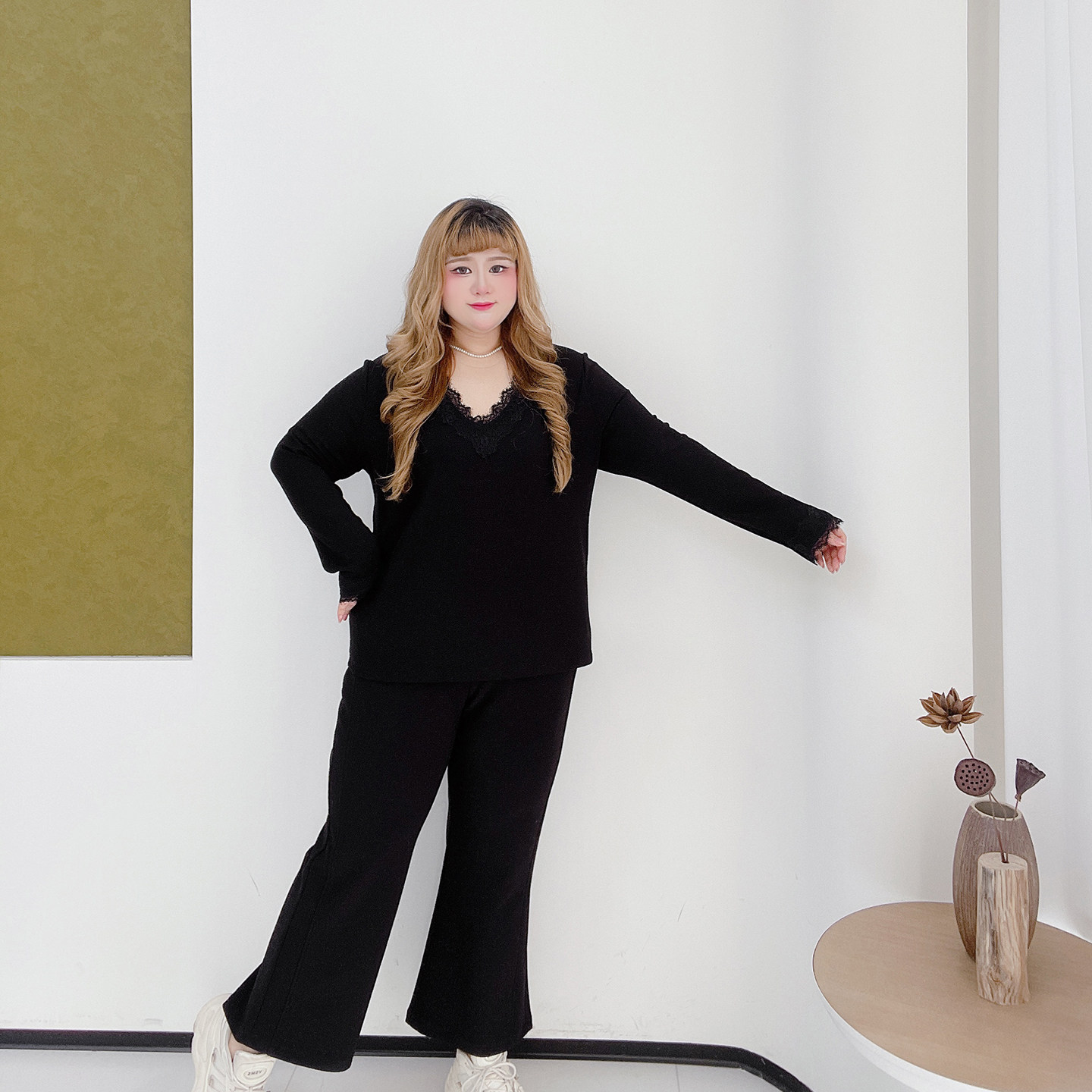 百搭牛仔裤 200斤胖mm松紧腰纯色显瘦弹力喇叭裤 女装 胖莹莹大码