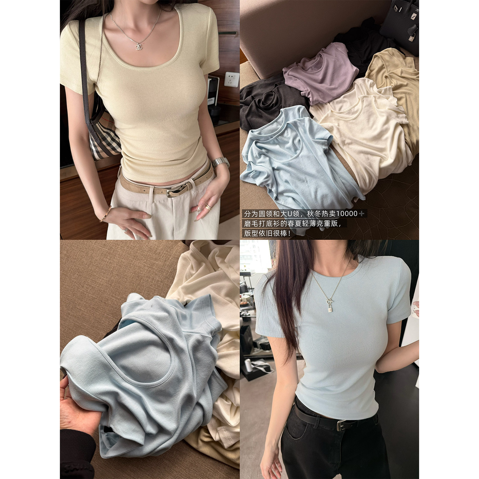 tee 微磨毛正肩T恤大弹力显瘦圆领大U领短袖 春夏升级2.0糯叽叽