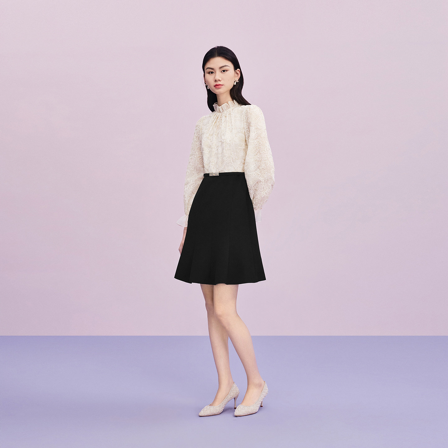 收腰灯笼袖 法式 Lakoradior拉珂蒂通勤女新款 A字裙 商场同款