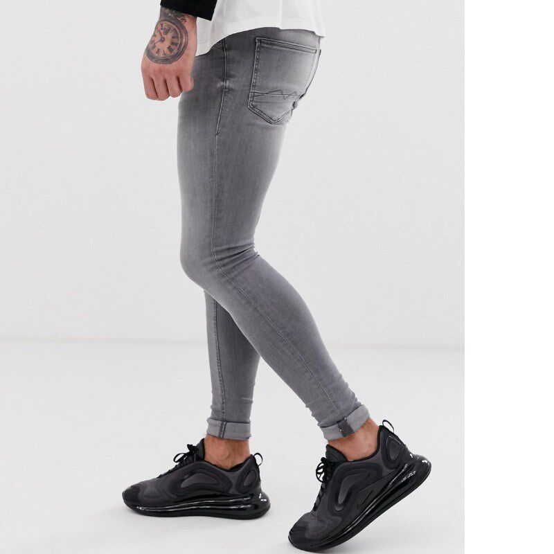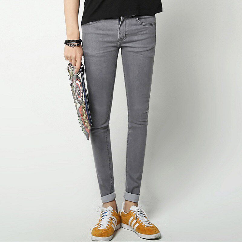 牛仔长裤 英伦紧身弹力小脚复古浅灰色牛仔裤 铅笔裤 复古秋款 男个性