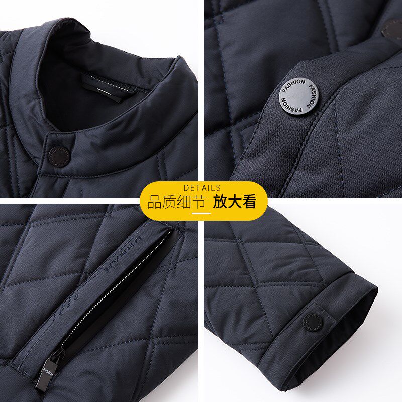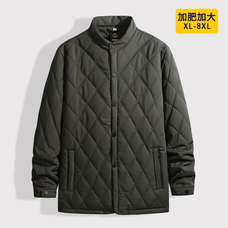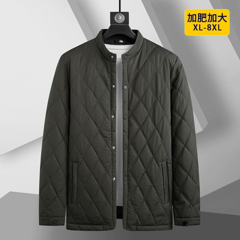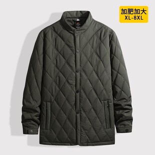 外套轻薄款 休闲棉服胖爸爸装 中老年加大立翻领高级 加肥加大码 冬季