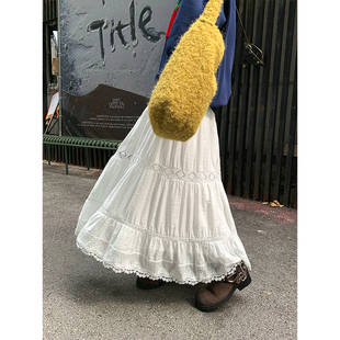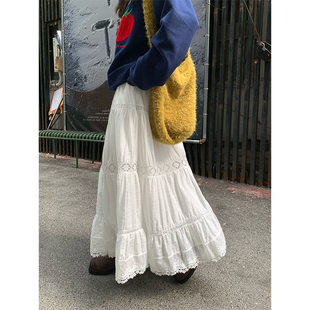 法式 新款 少女小众半身裙 白色蕾丝小花边钩花蛋糕裙2025秋季 CCKOK