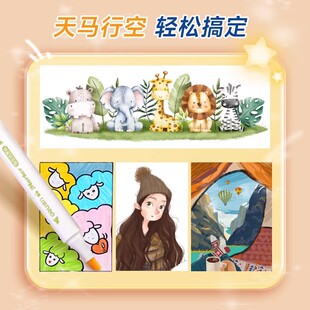 得力双头马克笔食品级水彩笔幼儿园小学生专用学生专用可水洗儿童美术专用画画笔套装 涂鸦笔12色24色36色48