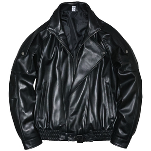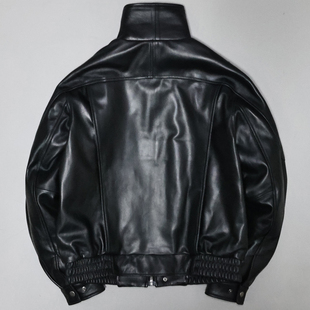头层绵羊真皮皮衣男女宽松廓版 显瘦青年休闲男友风机车夹克外套汝
