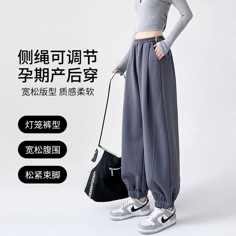 外穿显瘦束脚运动灯笼裤 大码 加绒长裤 子2025秋冬新款 200斤 孕妇裤
