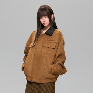 廓形棉袄 短款 PU皮假两件连帽夹克棉服男女冬季 加厚高级感保暖美式