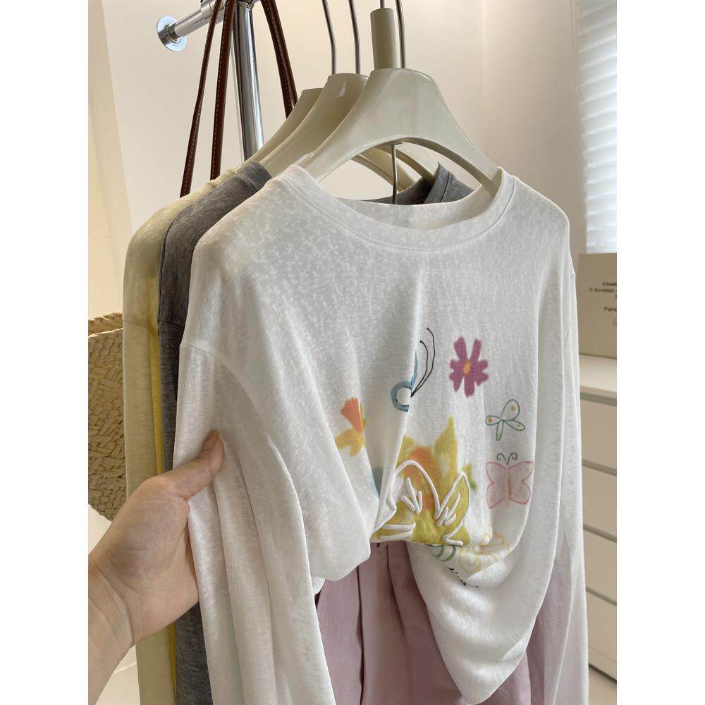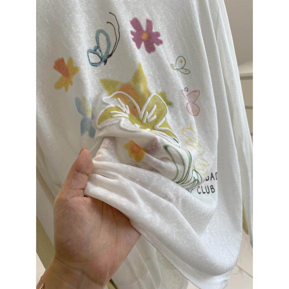 t恤空调衫 女生慵懒风天丝微透长袖 防晒罩衫 韩系减龄彩色花朵夏季