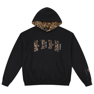 套头情侣加绒外套男 双层皮毛豹纹休闲连帽卫衣美式 MEDM 帽里豹纹