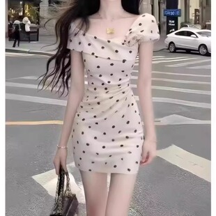 小个子温柔纯欲风不规则修身 短裙 波点收腰包臀设计感连衣裙女时尚