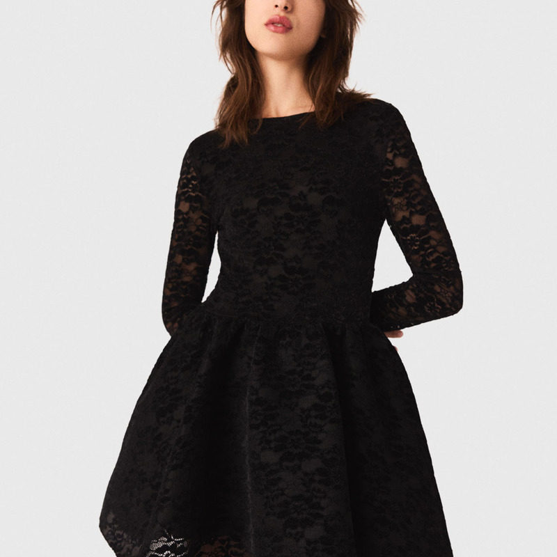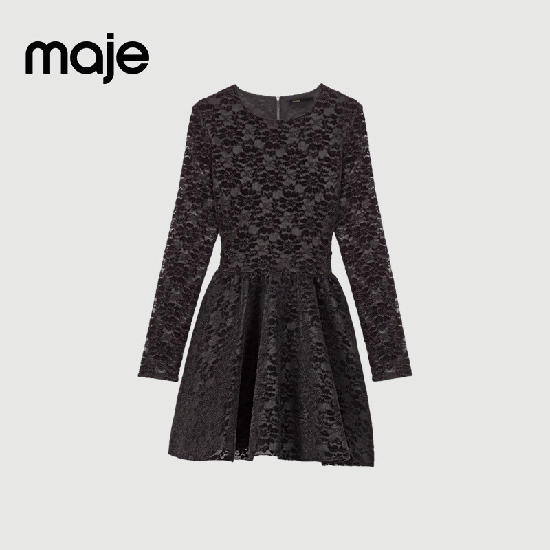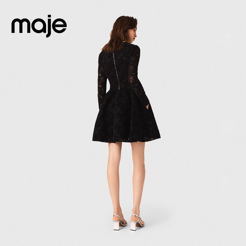 气质黑色收腰镂空印花刺绣圆领短款 Maje2025秋季 法式 女装 溜冰裙 款