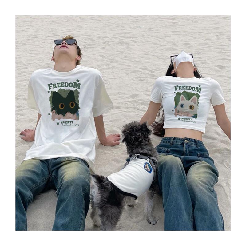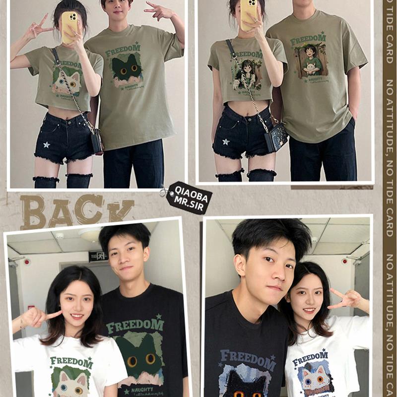 短款 短袖 2025新款 特别 小众独特一长一短t恤套装 夏装 爆款 情侣装