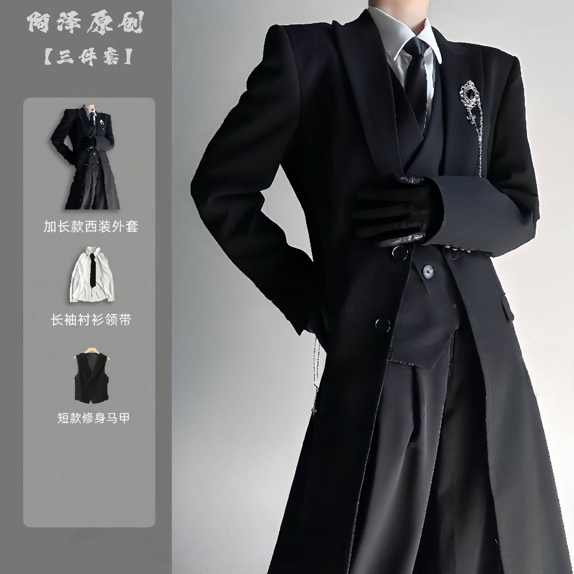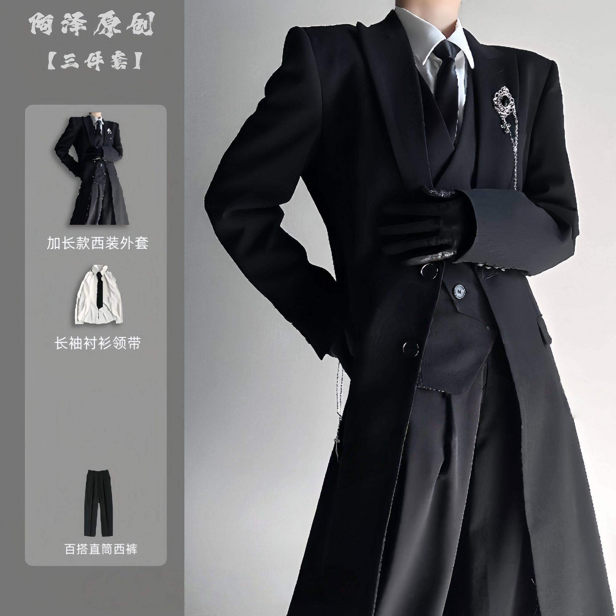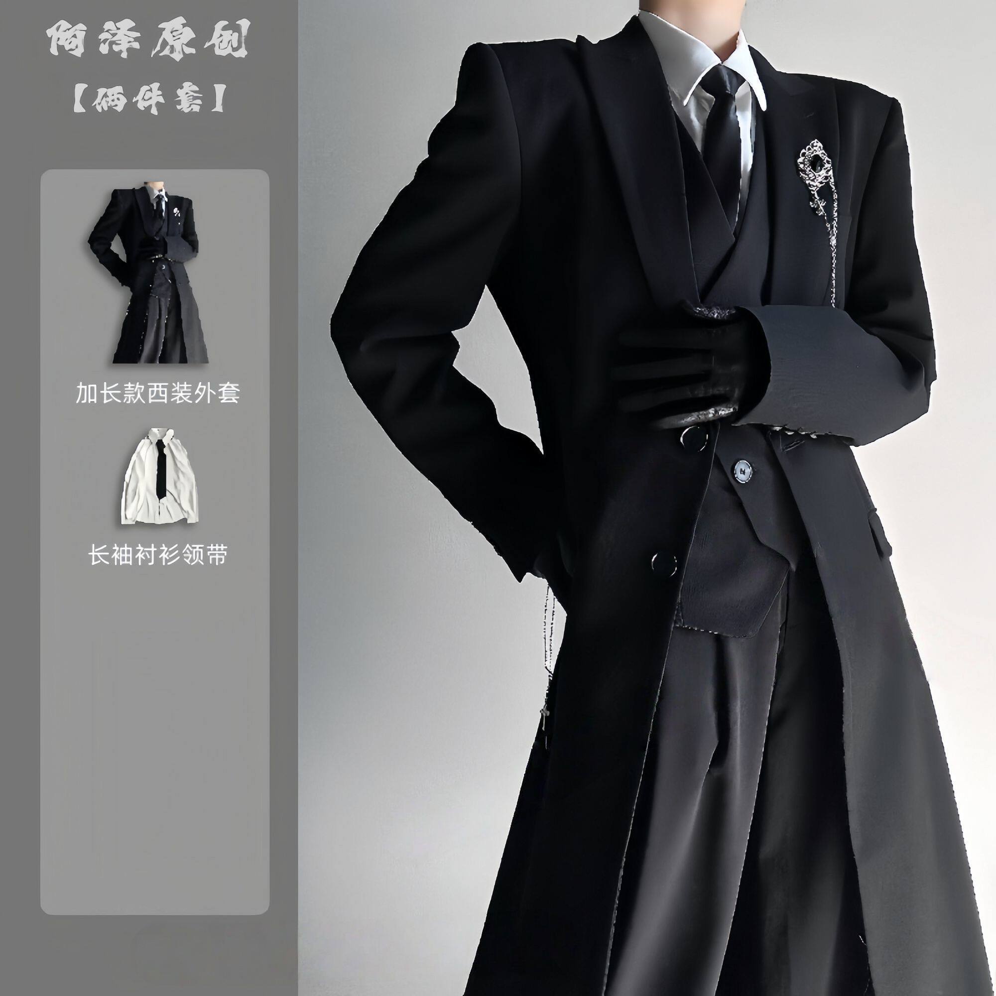西服外套中性风高级感黑色正肩大衣风衣套装 春秋季 山本风长款