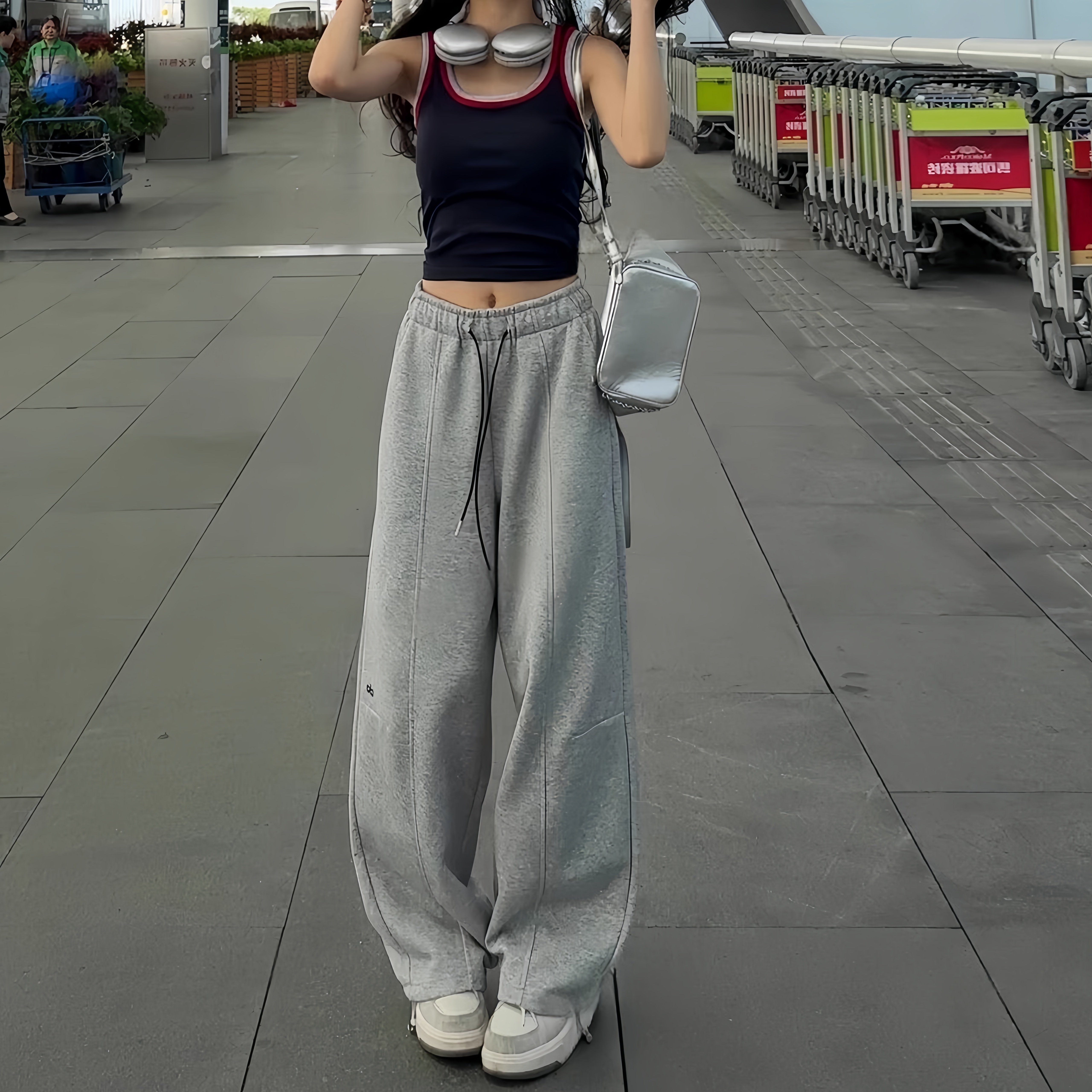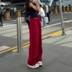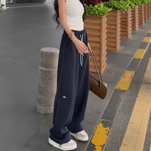 新款 女2026春季 时尚 刺绣弯刀裤 潮 美式 高腰百搭直筒休闲卫裤 运动裤