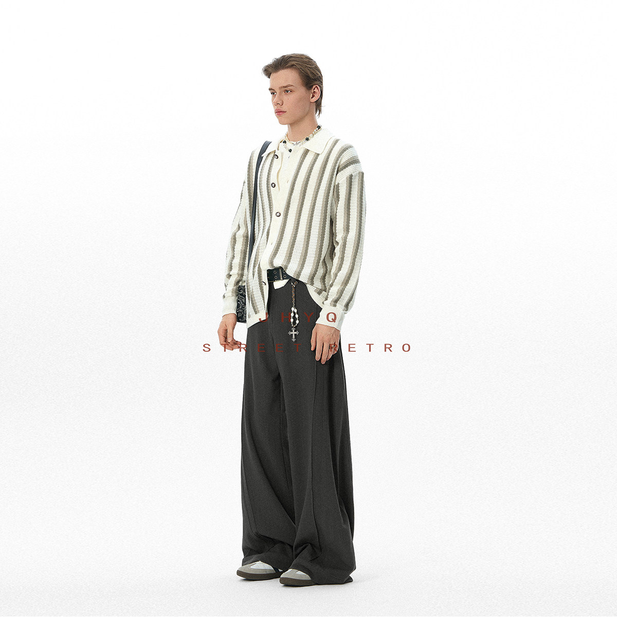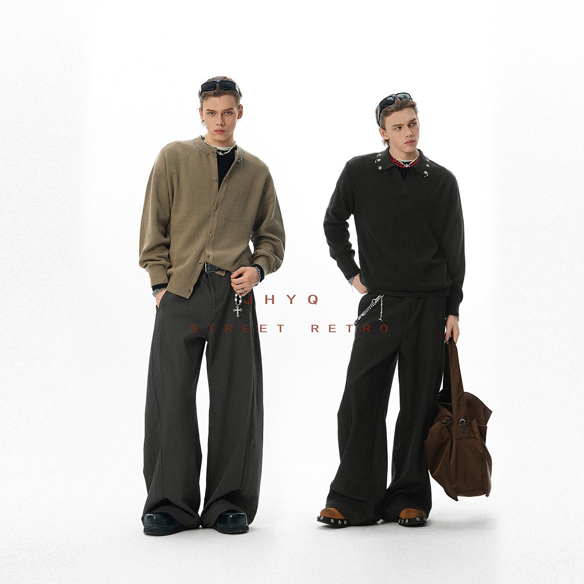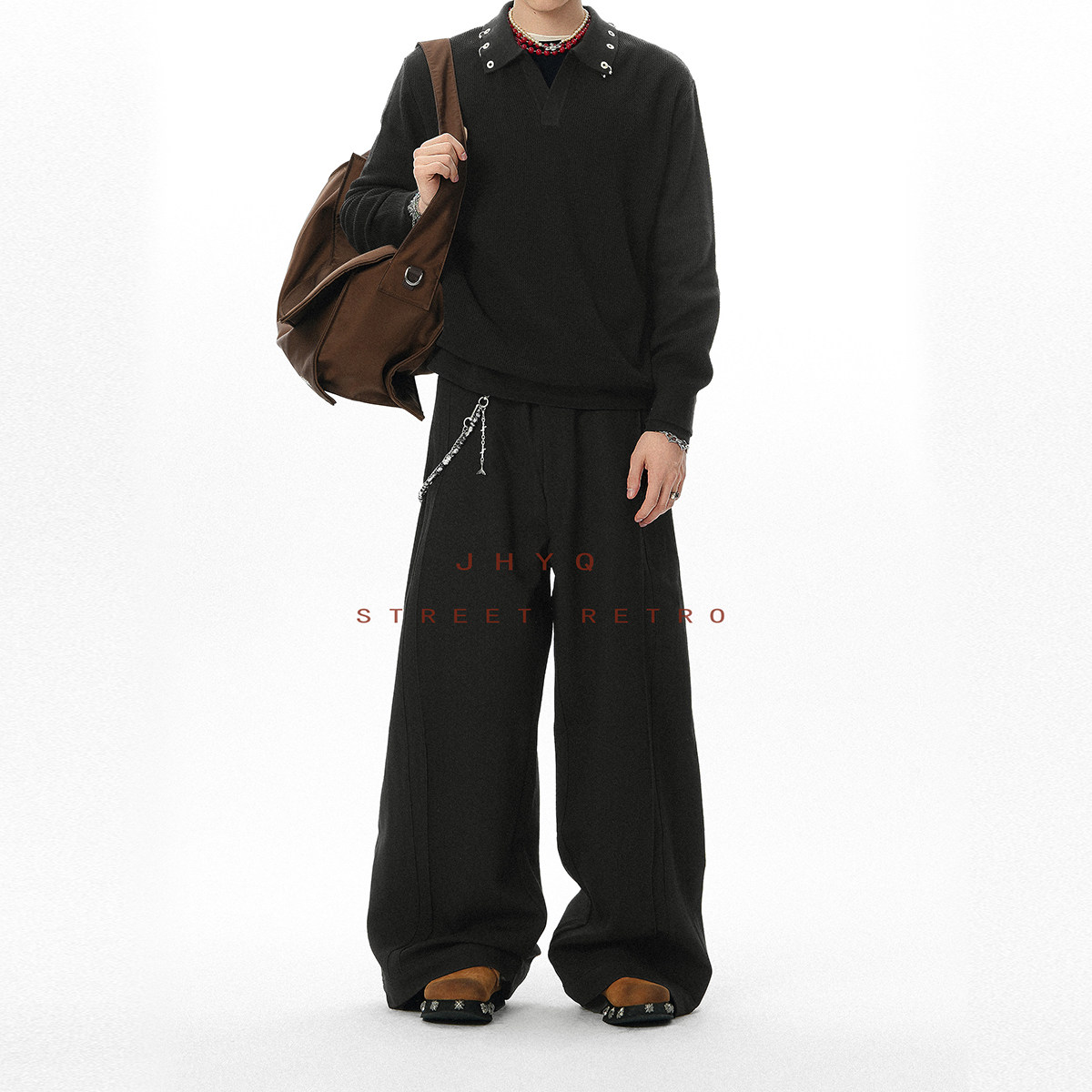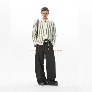 男宽松直筒阔腿长裤 JHYQ净化眼球美式 高级垂感立体褶线休闲西裤