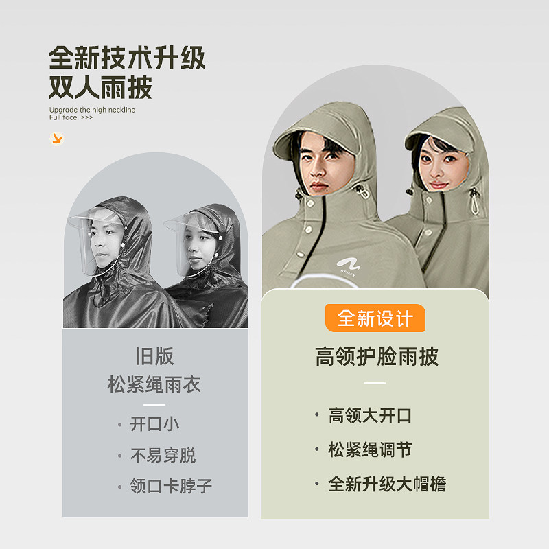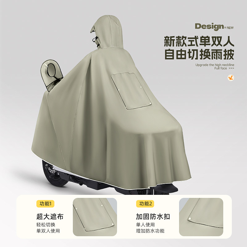 备美电动车雨衣双人骑行专用亲子加大加厚成人长款 全身防暴雨雨披