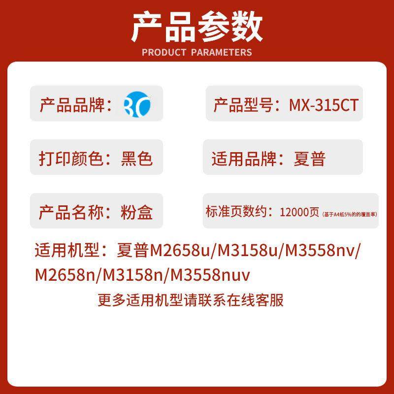 315CT硒鼓墨粉 M3158复印机墨盒MX 适用夏普M2658粉盒Sharp M3558