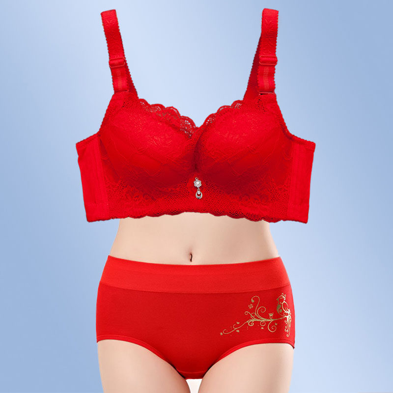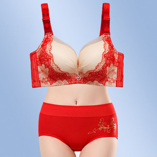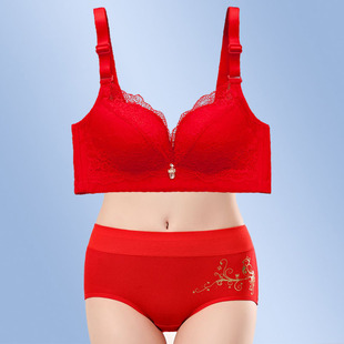 都市丽人红色内衣女士聚拢无钢圈本命年胸罩新款 新娘结婚文胸套装