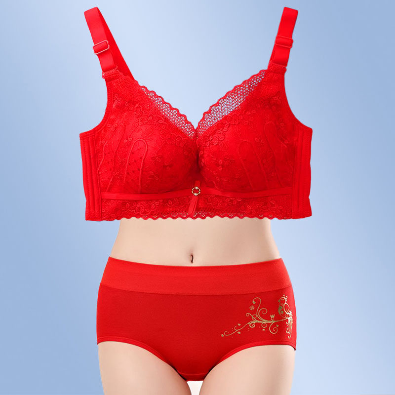 本命年内衣女红色蛇年转运小胸聚拢性感无钢圈结婚新娘文胸罩套装