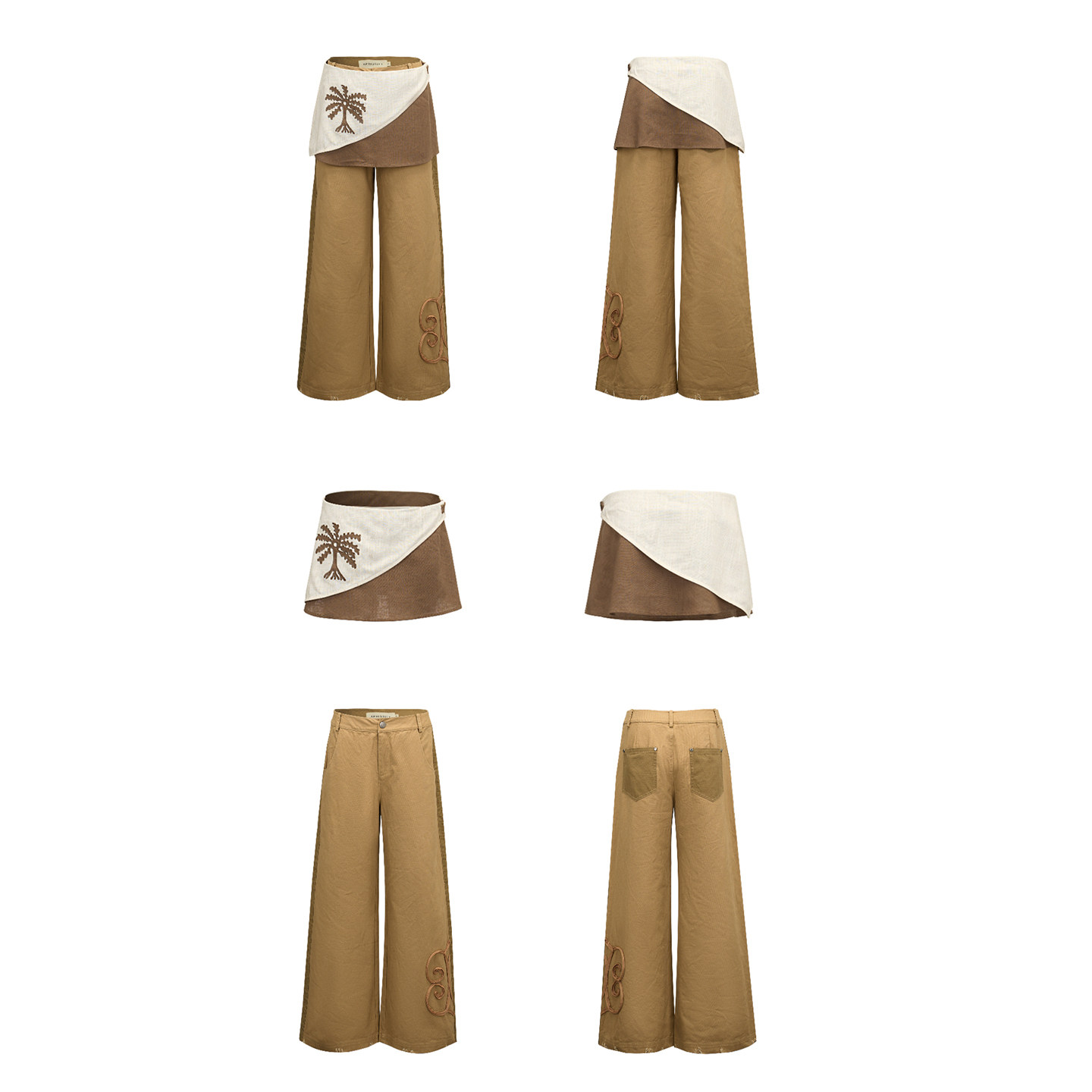 盘带绣贴布绣拼接破坏细节棉麻裙裤 APRIORITY先验 图腾可拆卸裙裤