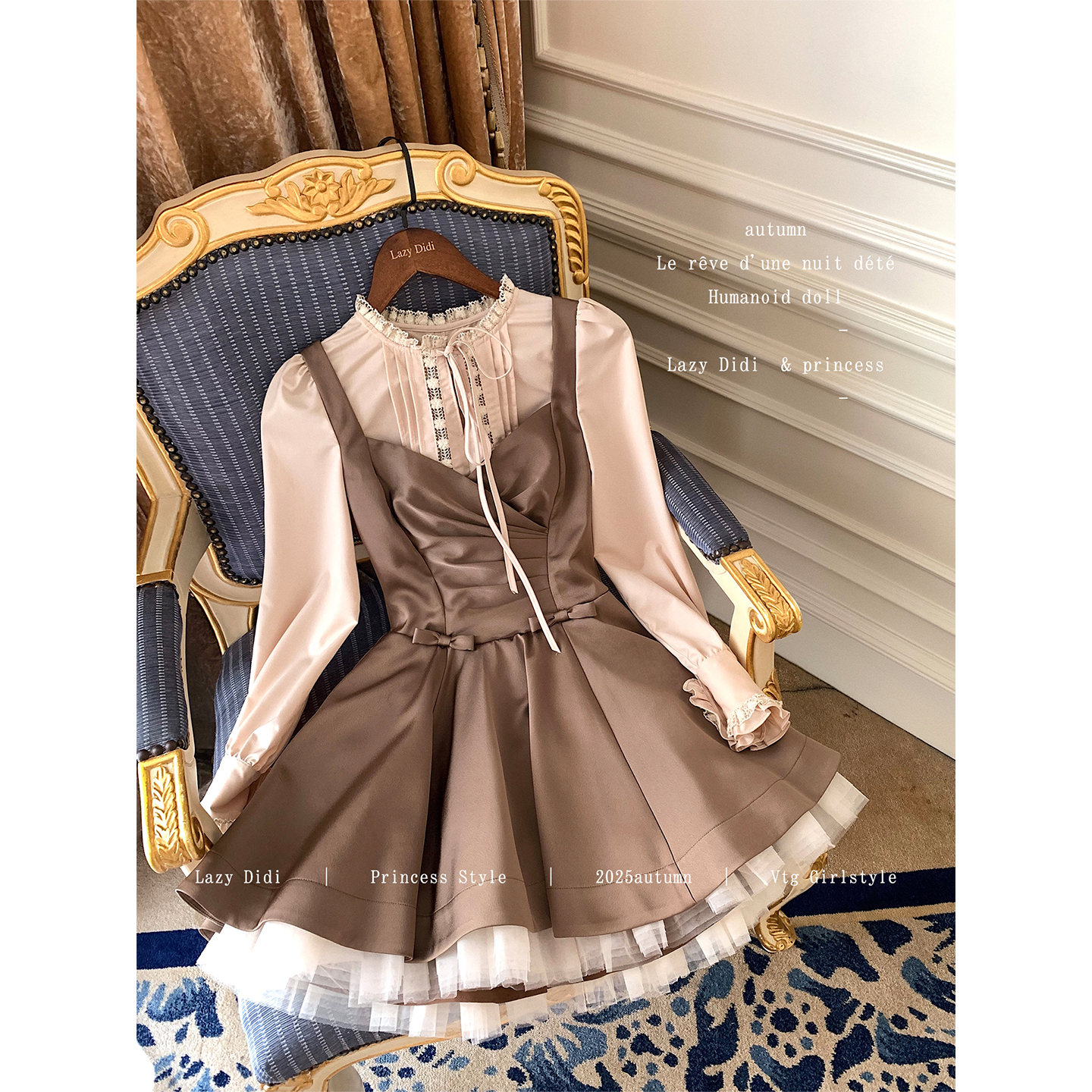 Lazy 复古假两件拼缎面连衣裙宫廷拼纱收腰公主裙 Didi中世纪公主
