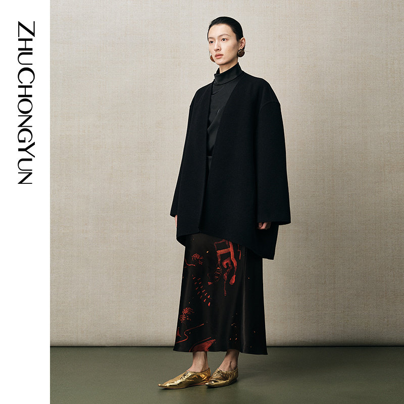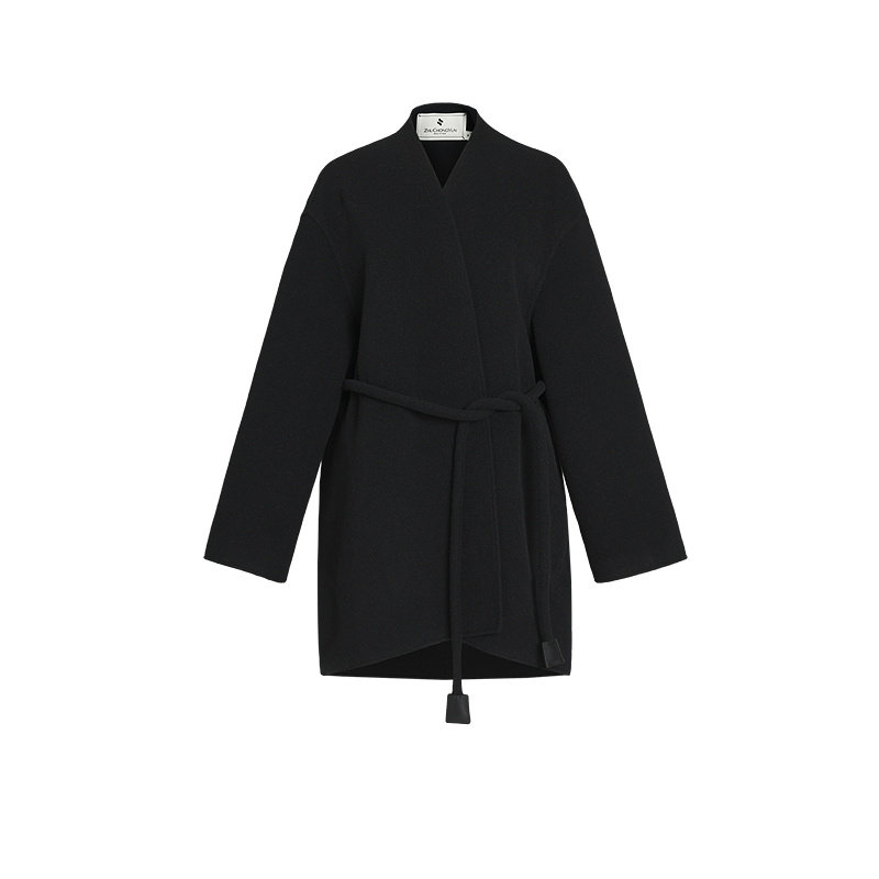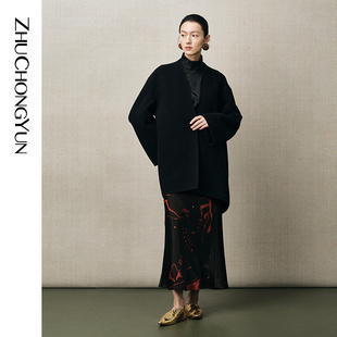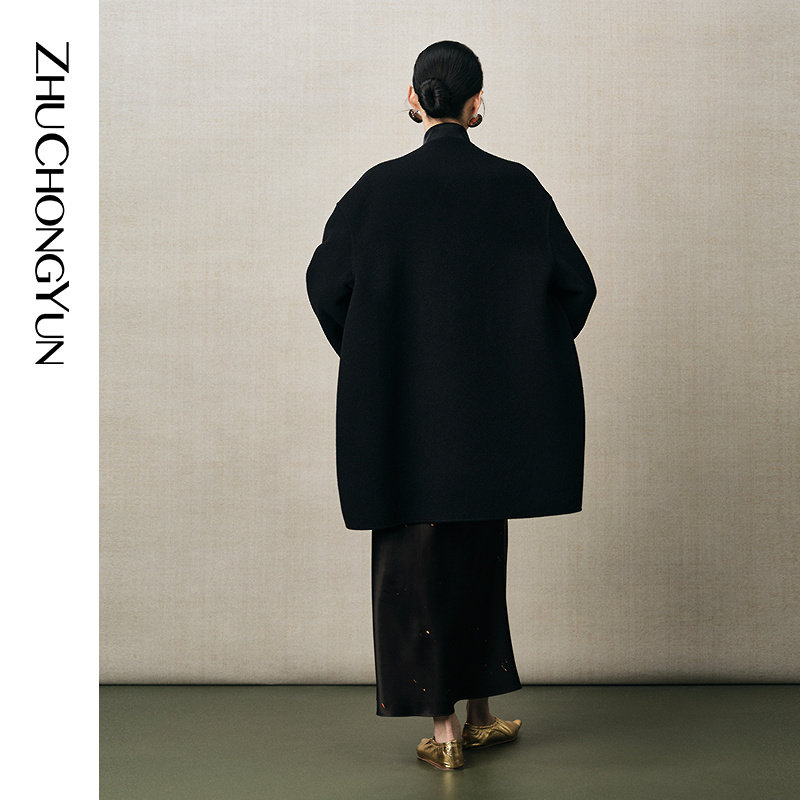 型腰间调节绑绳 版 ZHUCHONGYUN2025冬新款 毛呢大衣外套宽松中长款