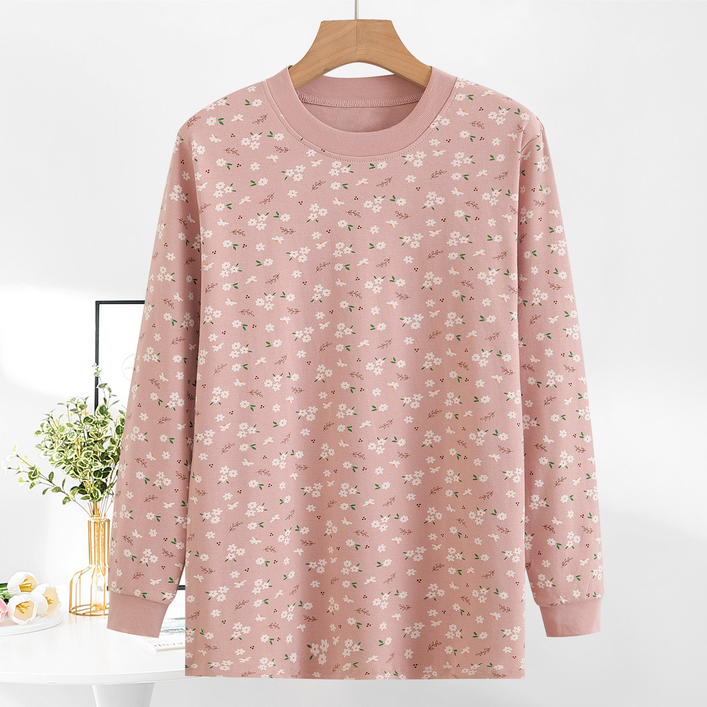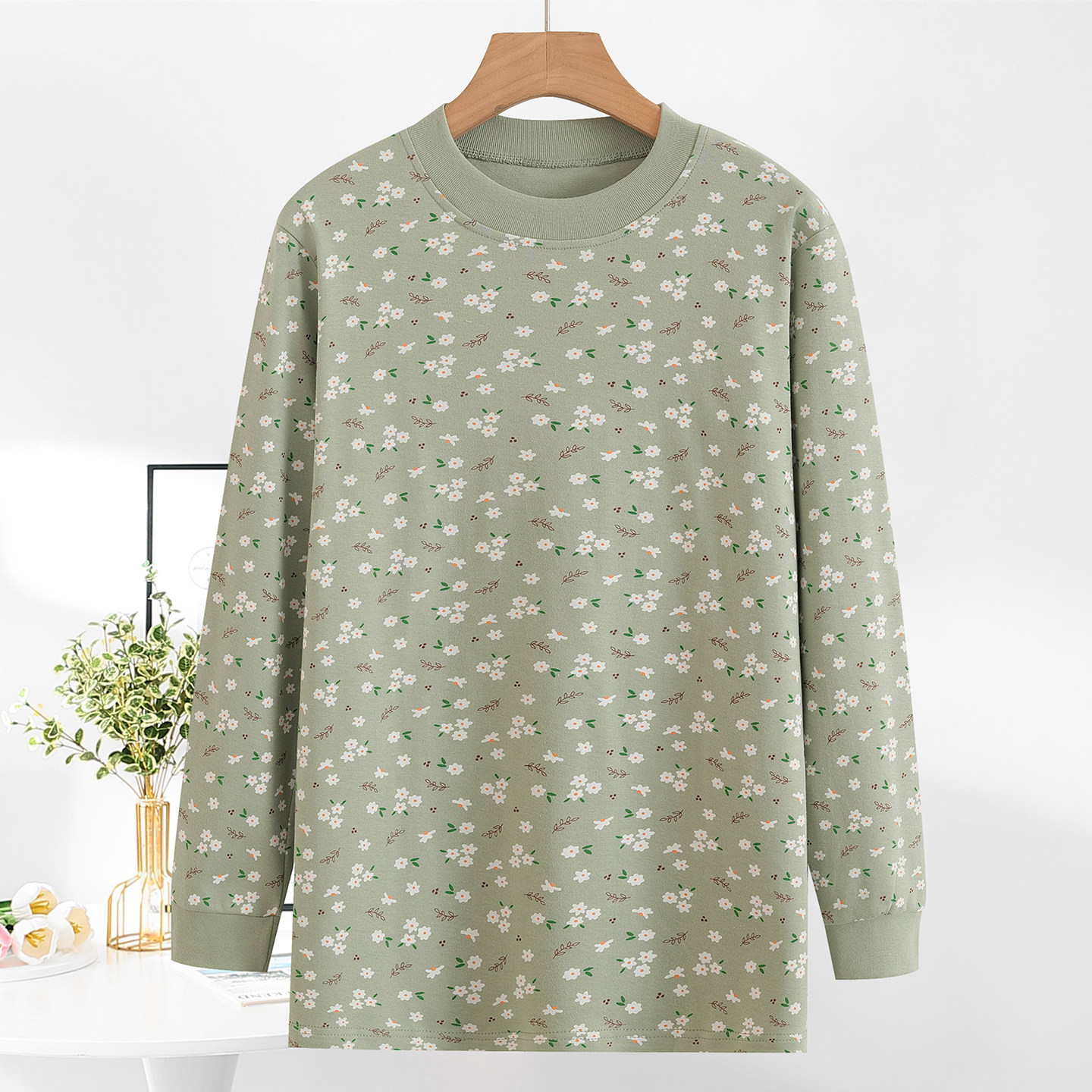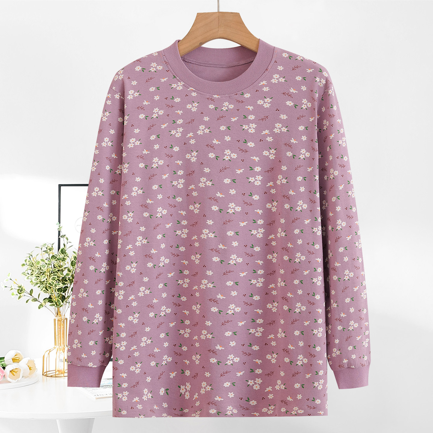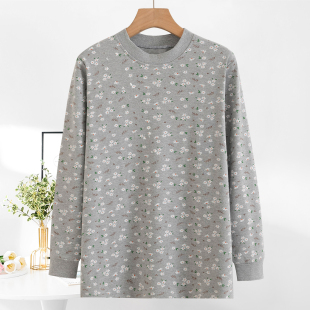 中老年女纯棉秋衣印花老人全棉打底线衣加肥大码 家居服 宽松棉毛衫