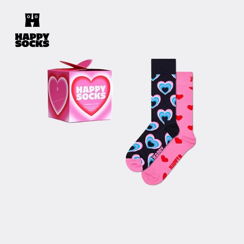 HappySocks新款 情侣礼盒 透气多巴胺爱心外穿中筒袜堆堆袜 新品