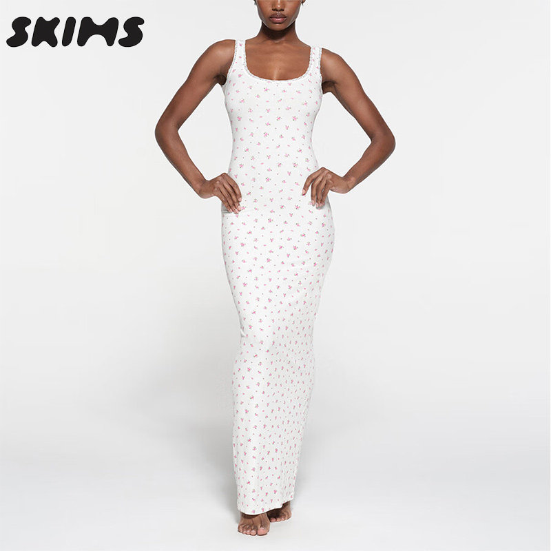 LOUNGE SOFT LACE蕾丝花边背心连衣裙露背吊带长裙女 HIRE SKIMS