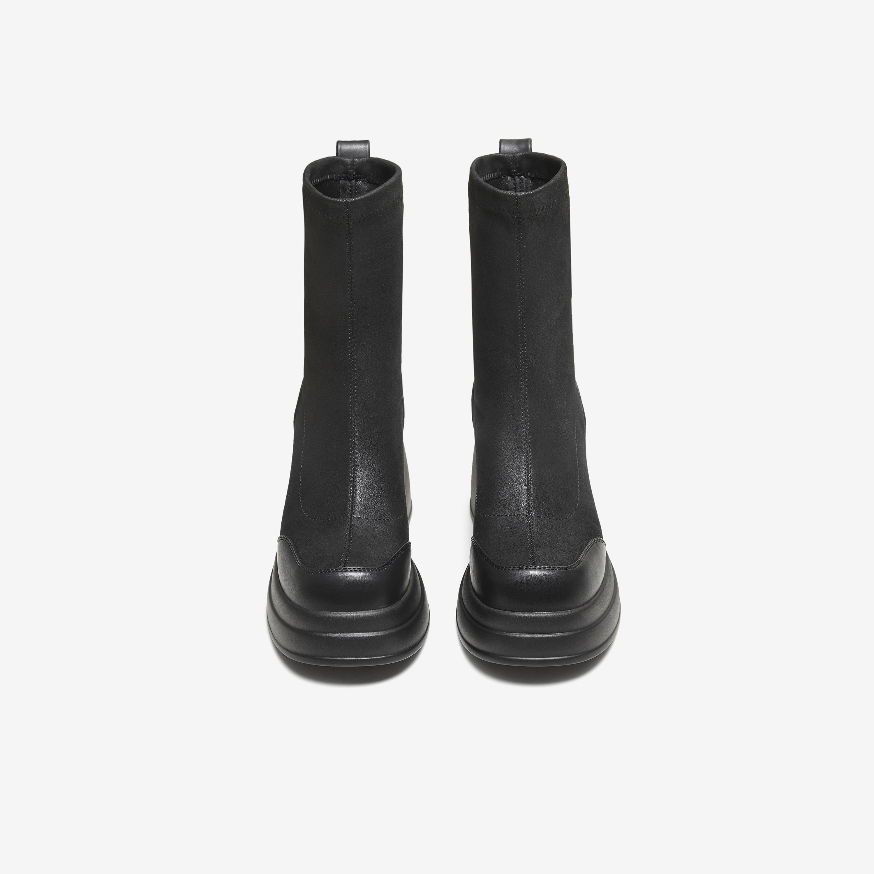 百搭黑色显瘦短靴WEC04DZ5 弹力靴时尚 TATA他她靴子2025冬季 新款