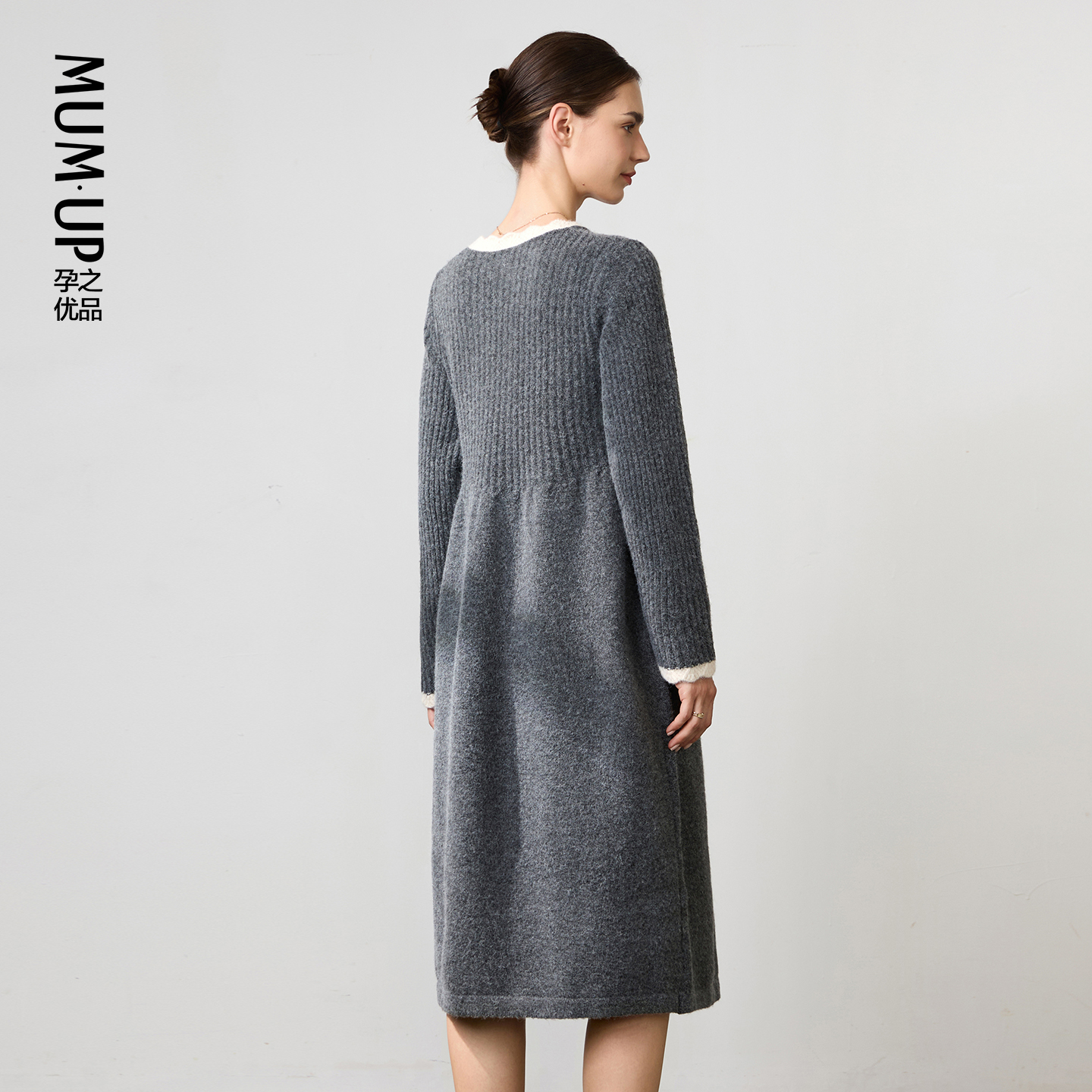 女简约珍珠扣针织裙 新款 秋水伊人法式 复古风收腰连衣裙2025年冬季