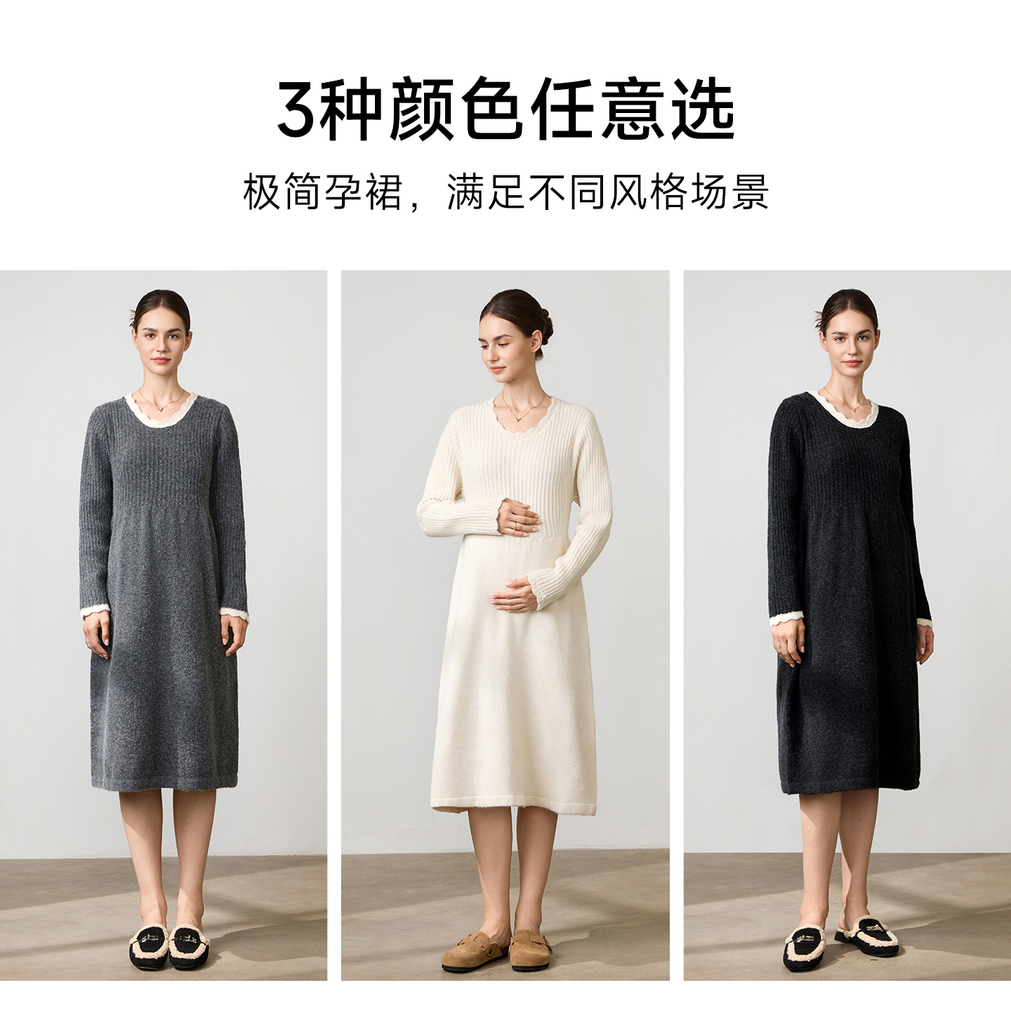 V领拉链显瘦长袖 时尚 赫本风通勤舒适气质连衣裙 秋冬季 2025年新款