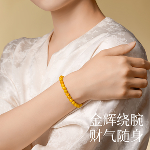 庆祥泰真品朱砂手串女款 官方旗舰店天然和田玉足金黄金手链女 正品