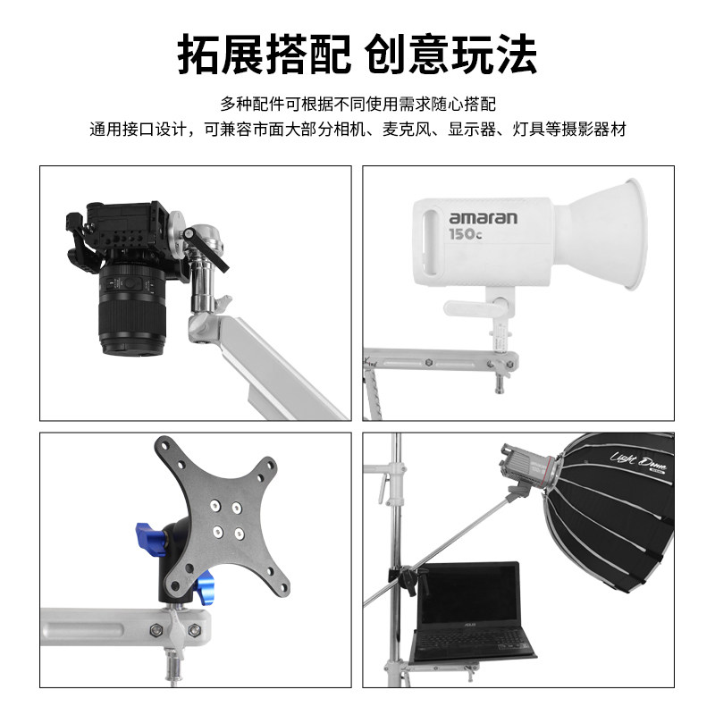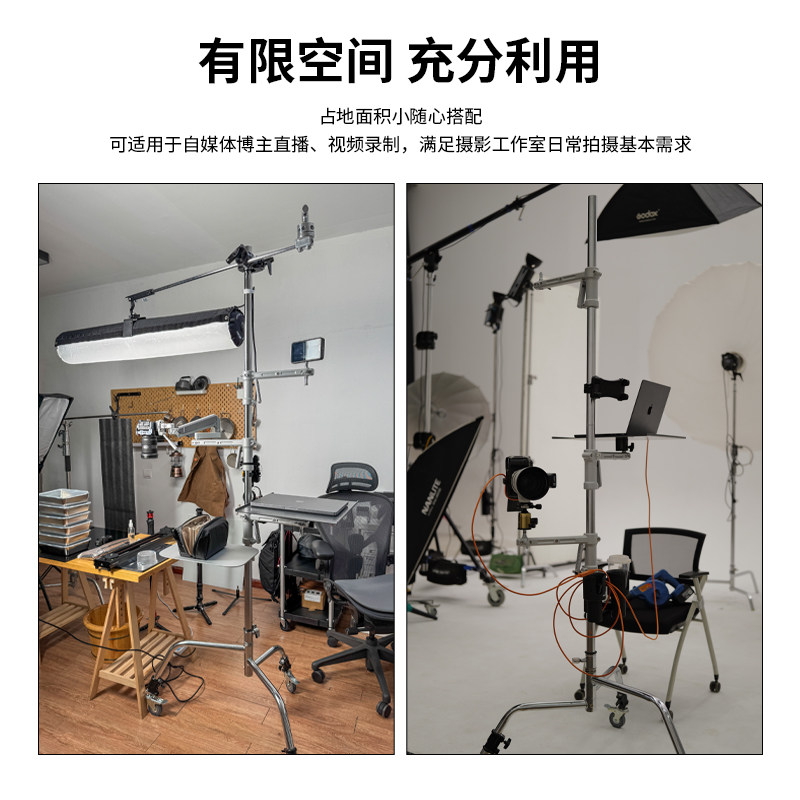Meking美铿K 8设备树多功能DIY工作室相机升降架平面拍摄俯拍单反直播架可移动拆卸横臂魔术腿枪把支架