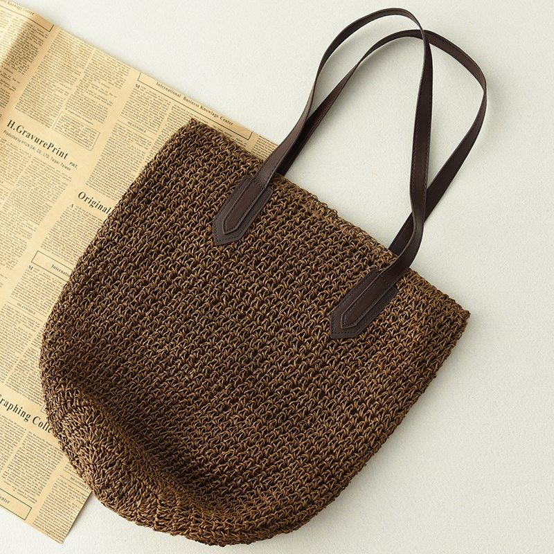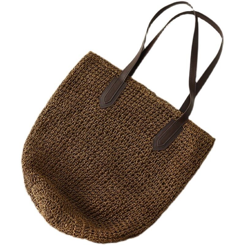 2021新款 文艺复古草r编包编织包手提包单肩腋下包草包大容量女包