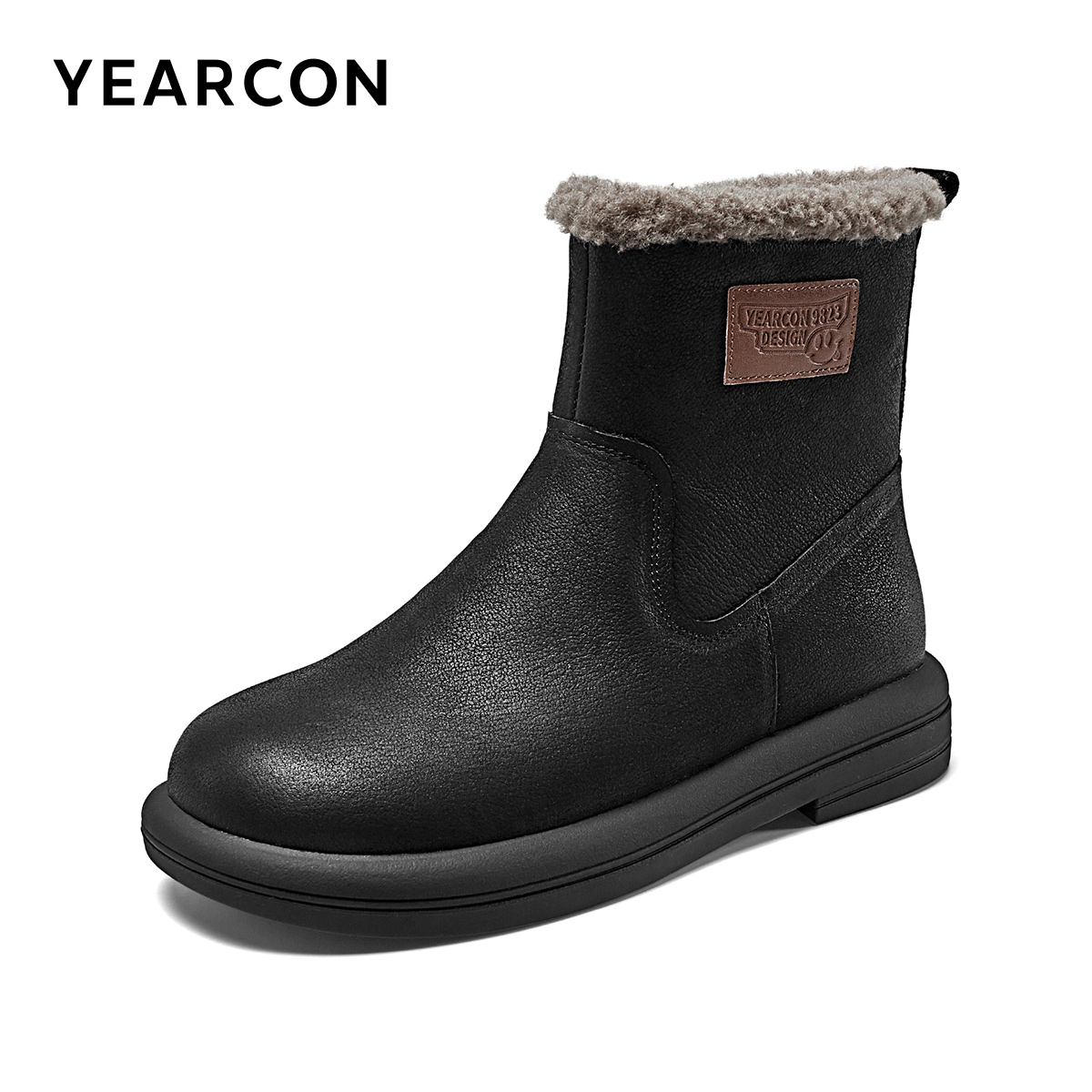 意尔康真皮雪地靴女2025冬款 加绒保暖中筒靴防滑防水短靴 妈妈棉鞋