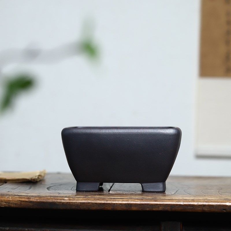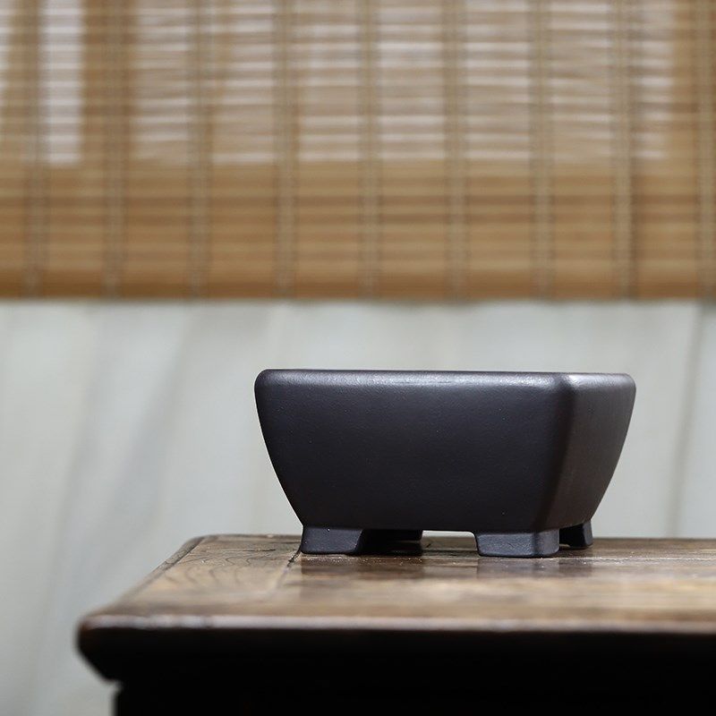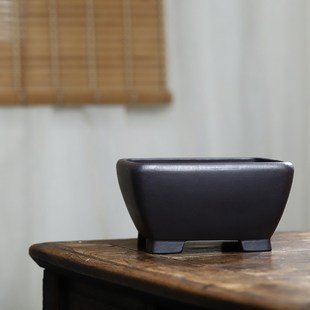 玖紫轩精品紫砂花盆四方古红泥斗笠老桩凤尾勒竹植物盆景桌面古典