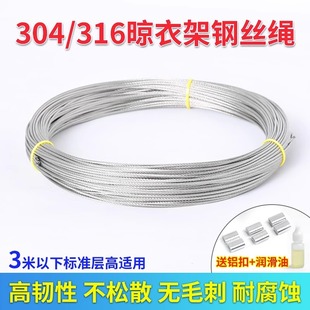 钢丝绳 304不锈钢晾衣架晒衣绳细软钢丝绳1mm1.5mm2mm3mm4mm5mm