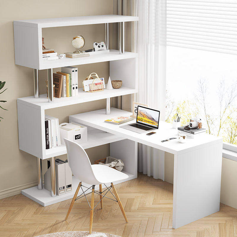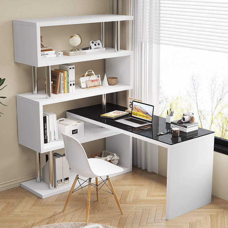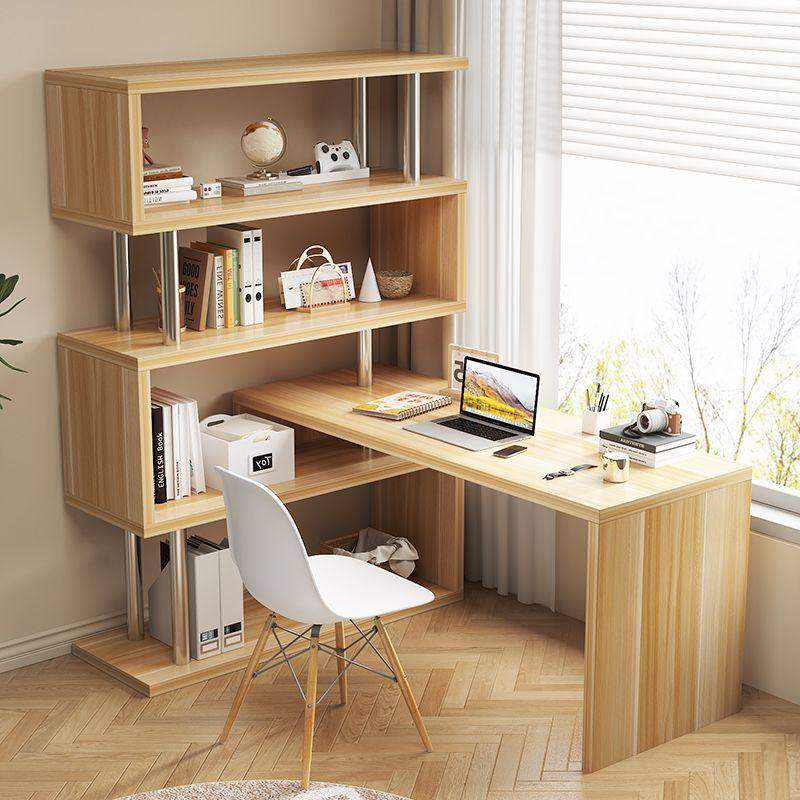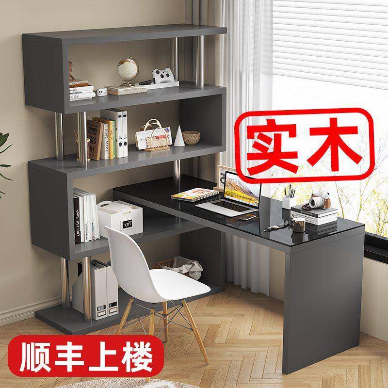 实木旋转L型转角书桌书架一体儿童学习桌初高中写字桌办公电脑桌