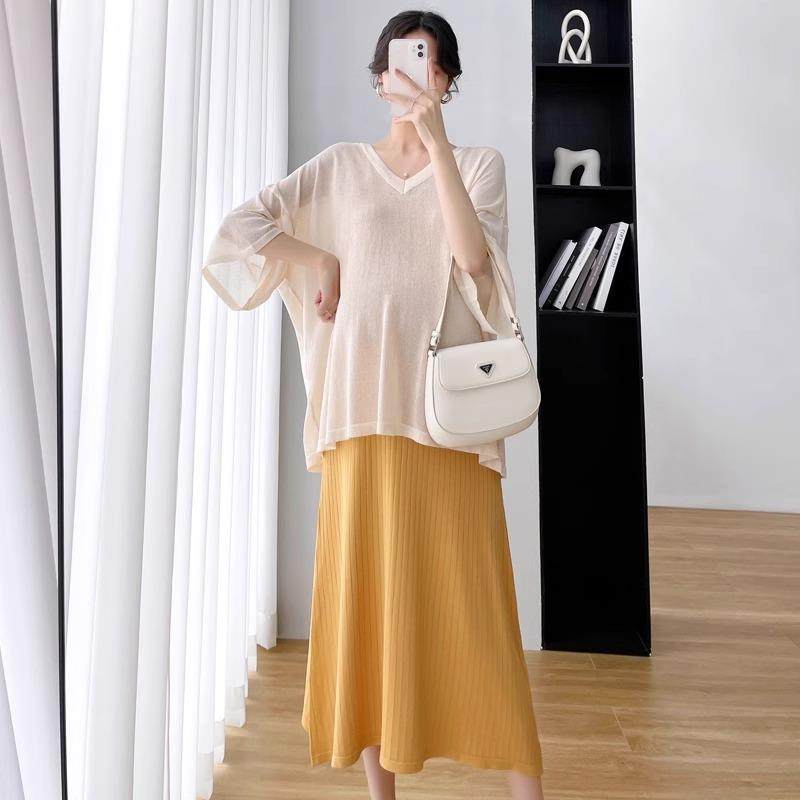 宽松大码 2024新款 冰丝防晒上衣吊带裙子两件套 套装 孕妇连衣裙夏装