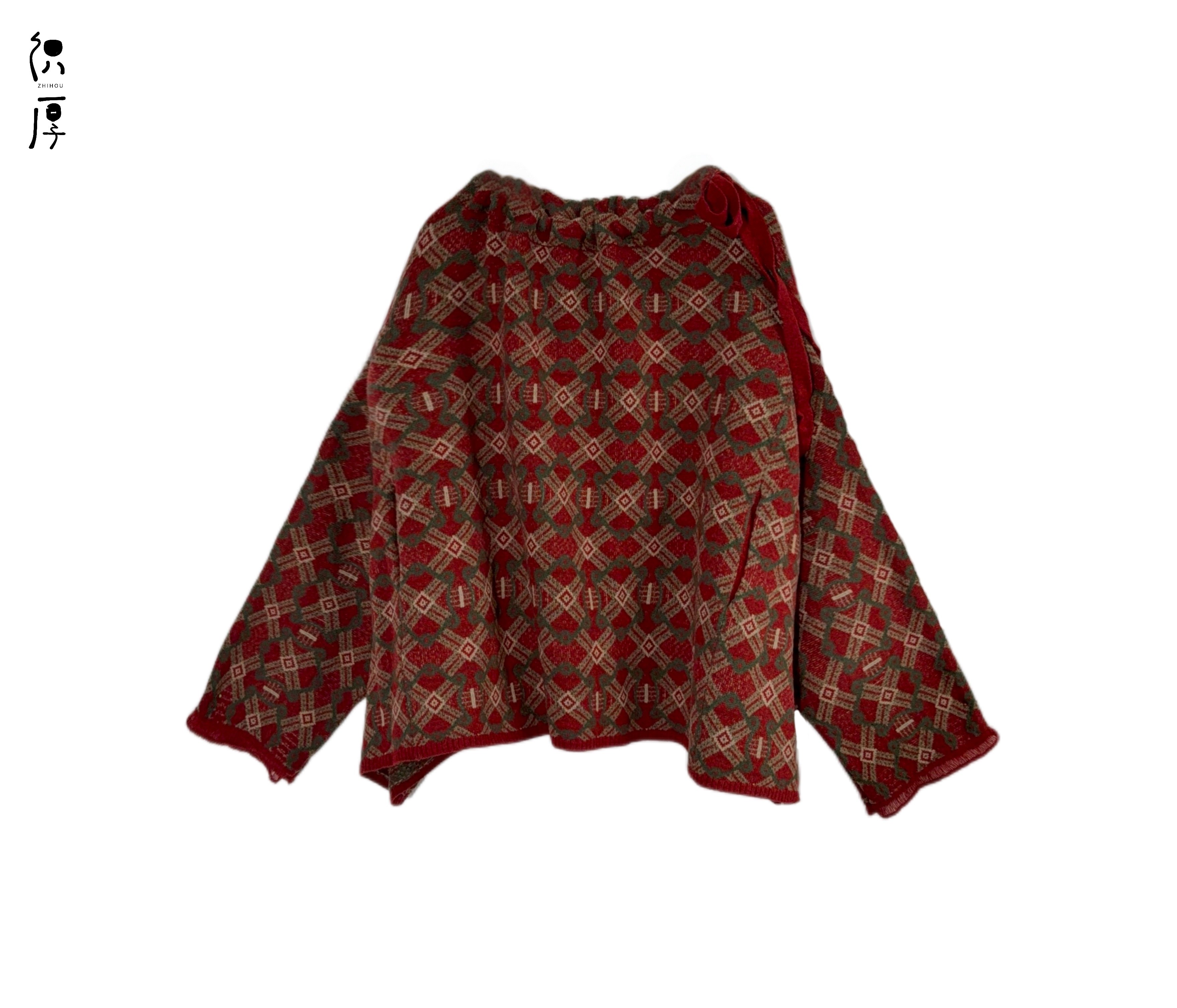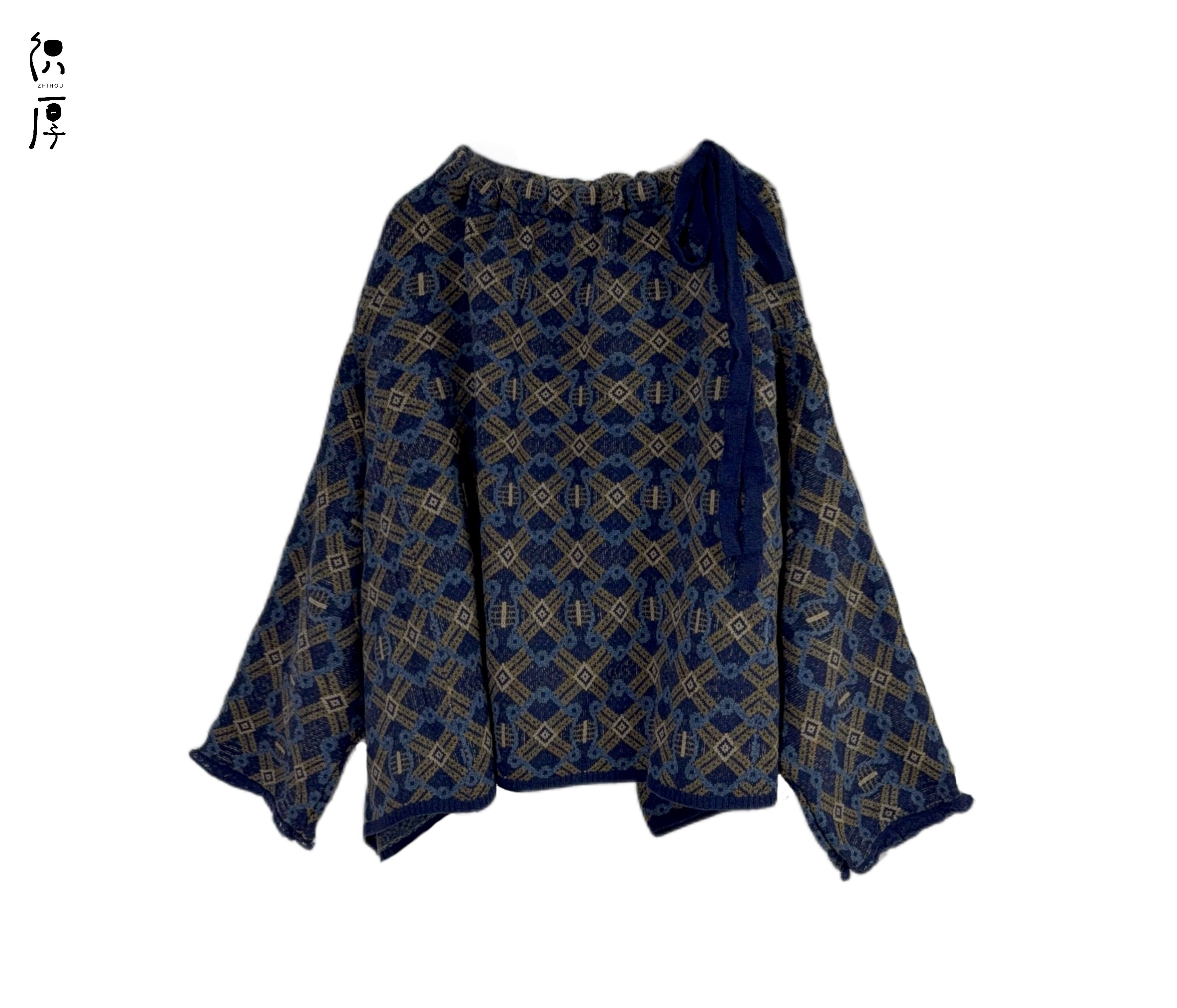 织厚原创设计秋冬绵羊毛系带针织毛衣Y0262