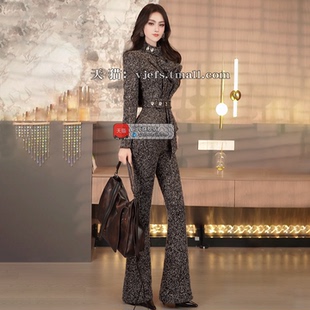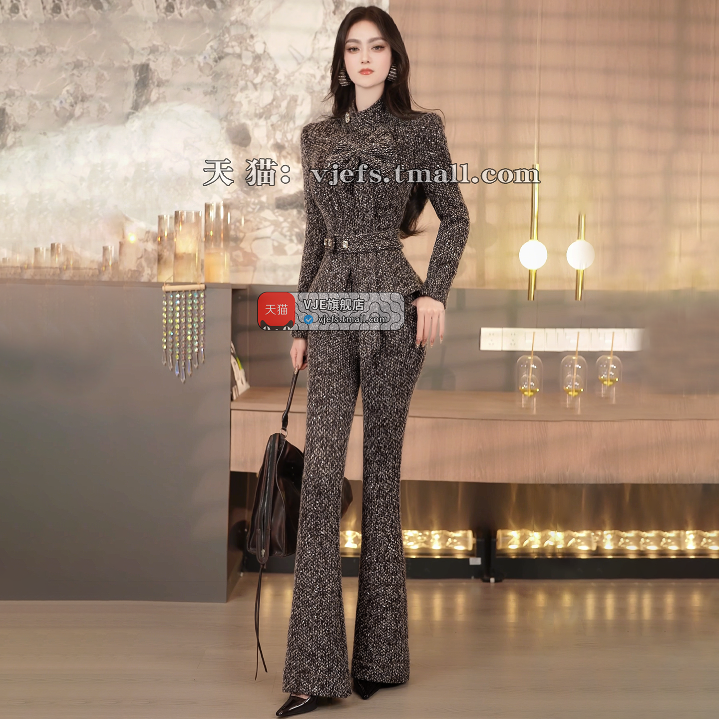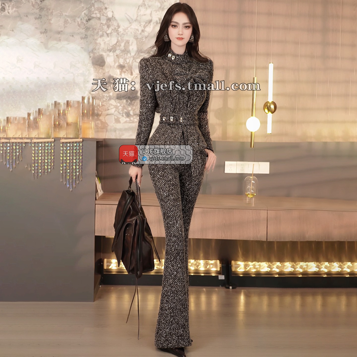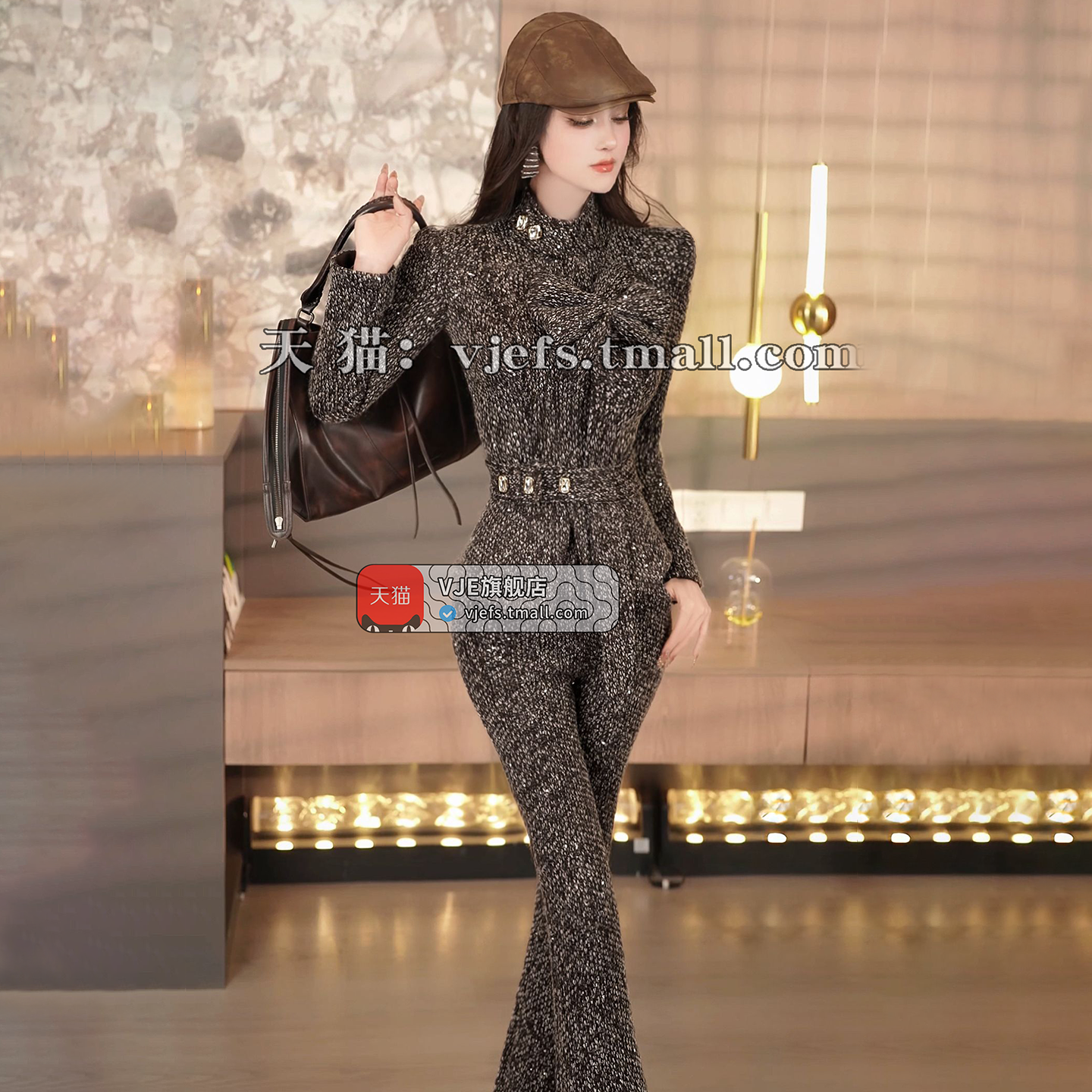 蝴蝶结外套高腰微喇叭两件套 2025新款 VJE冬季 欧美设计感OL套装