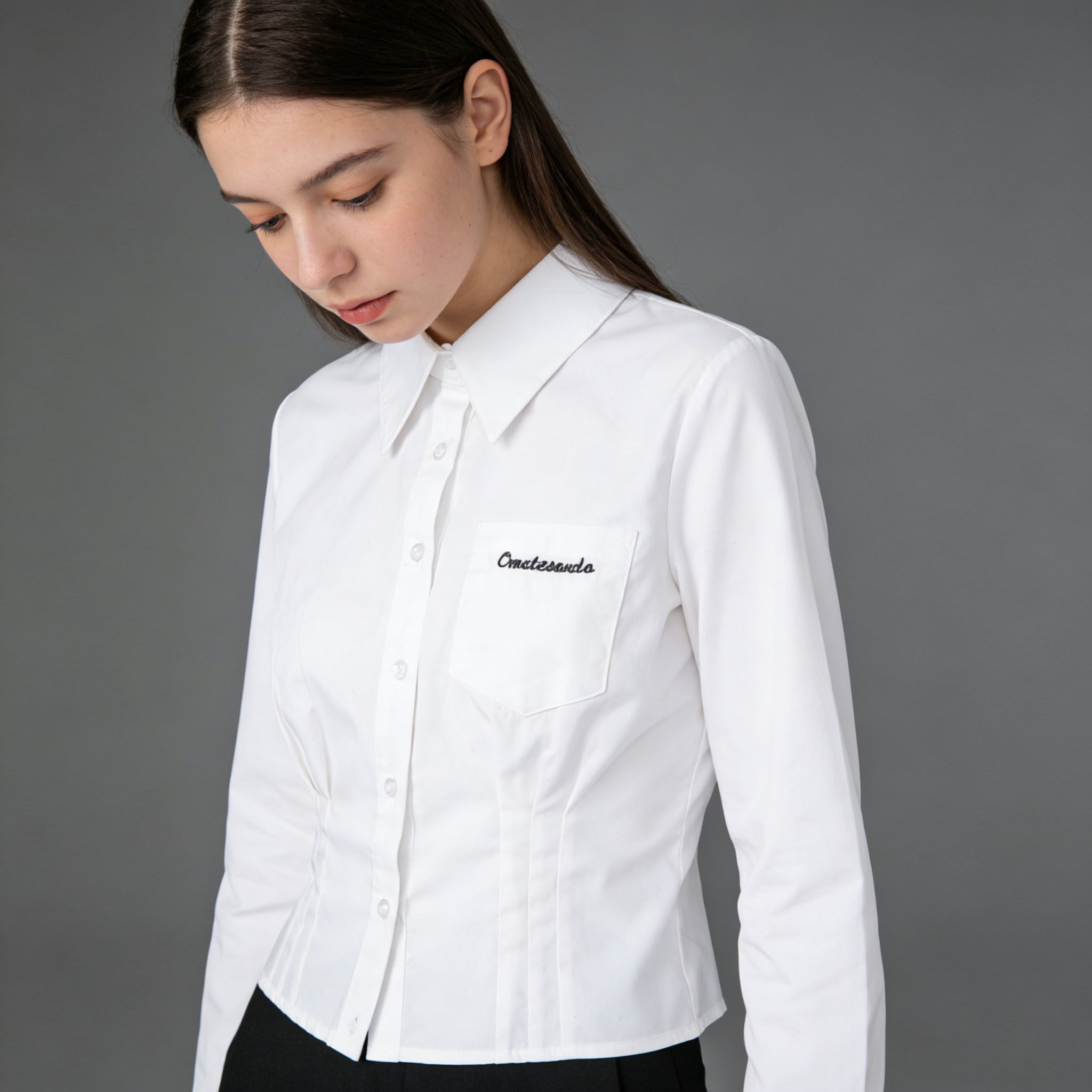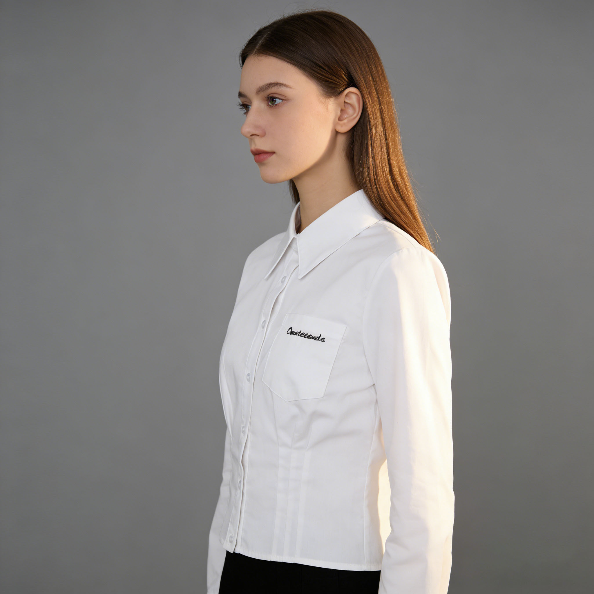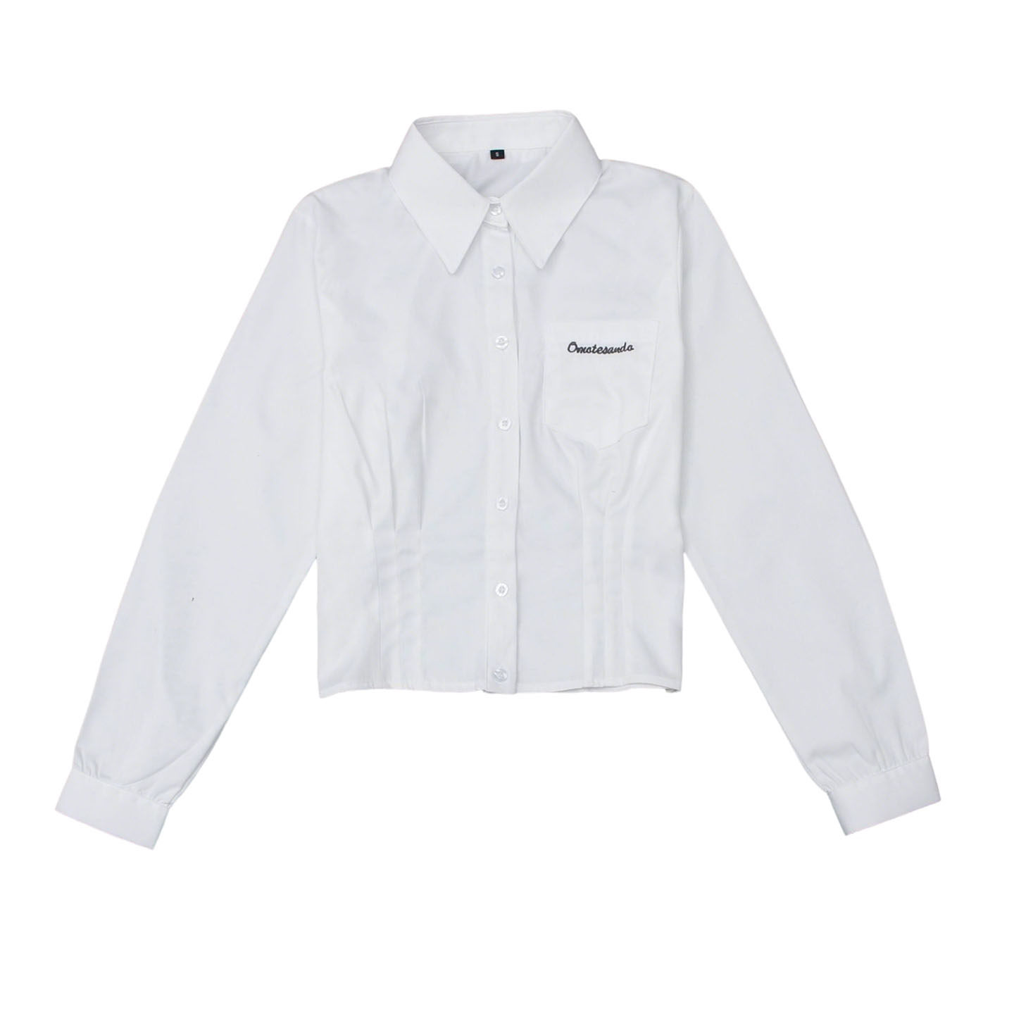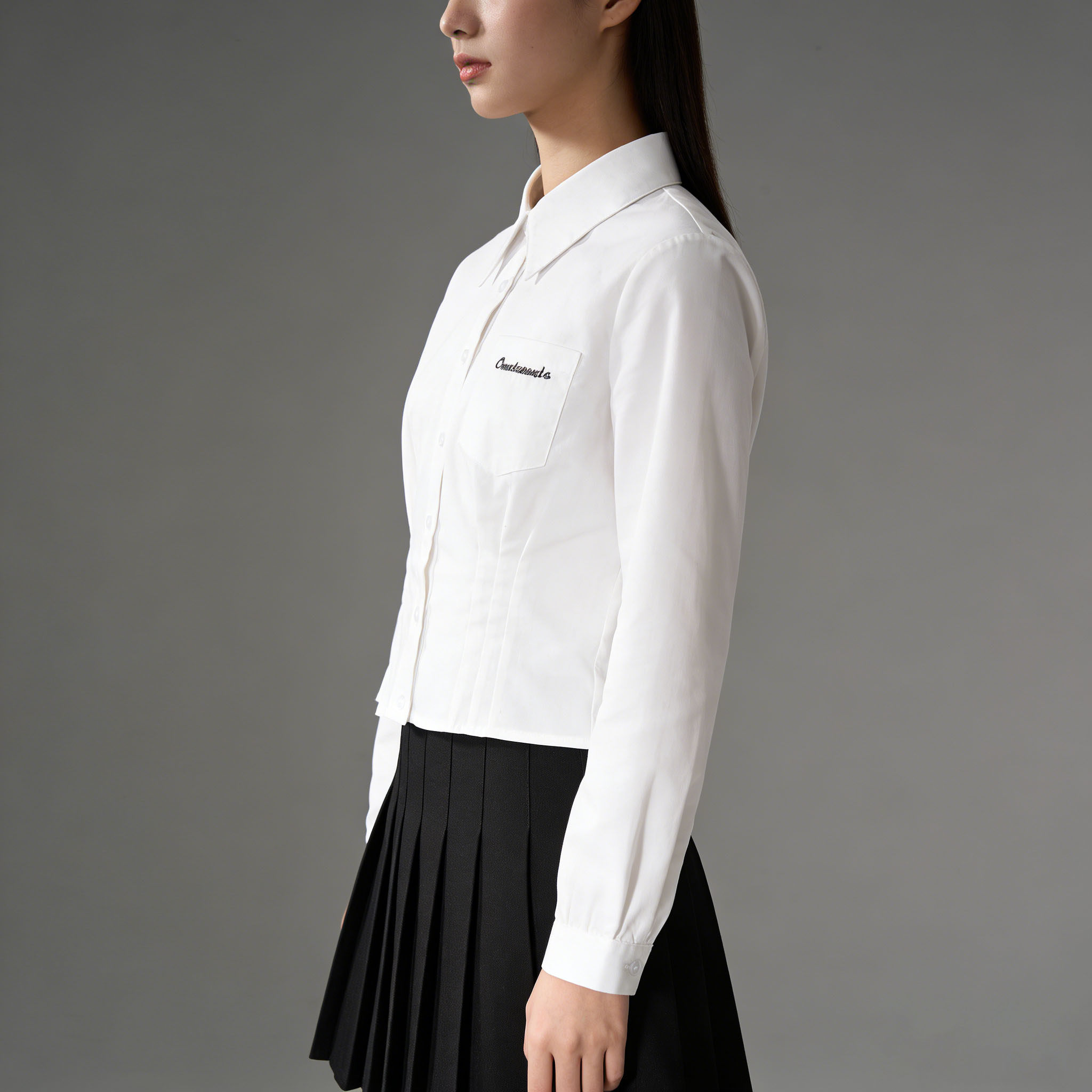长袖 狙击蝴蝶陈妍希岑矜同款 短款 修身 学院风小个子衬衣女 白色衬衫